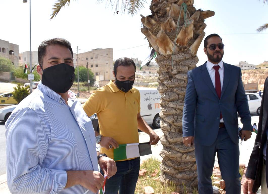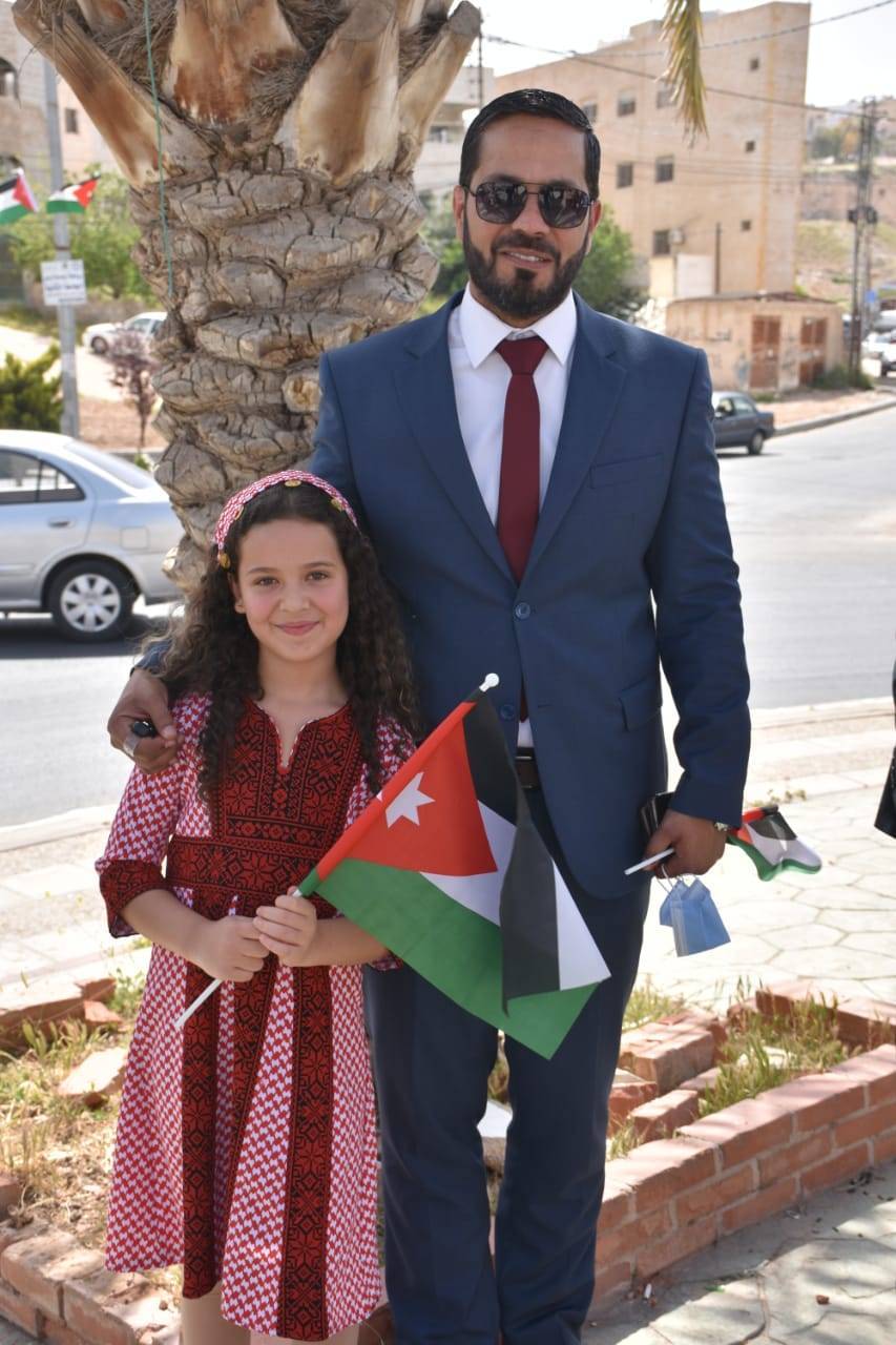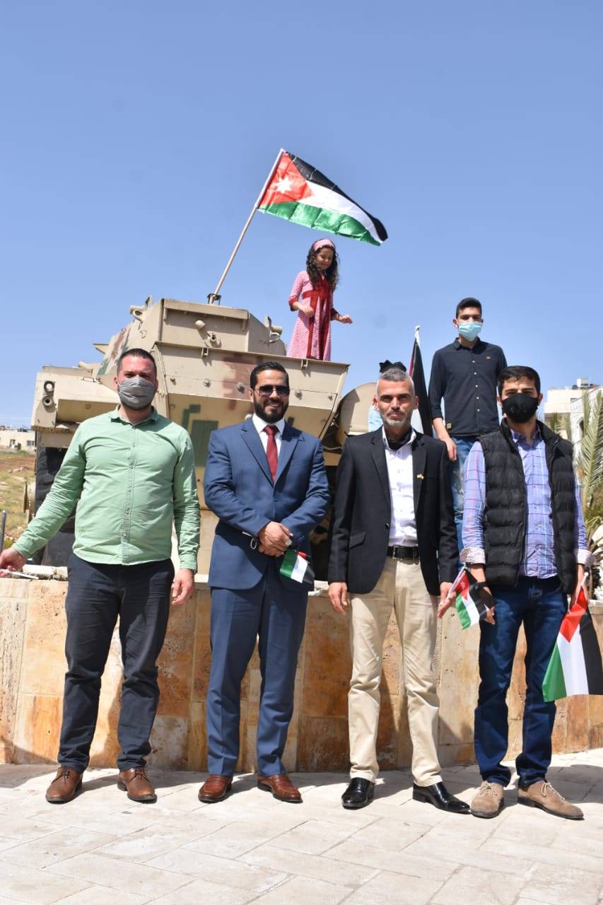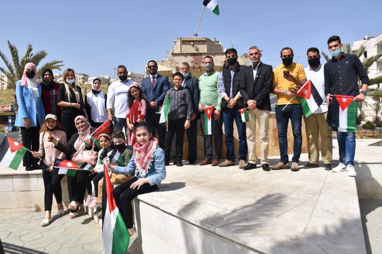وقد تم توزيع الأعلام الأردنية في الشارع العام للكبار والصغار، ووضع العلم الأردني على مجسم الدبابة(دوار الدبابة) من قبل الطفلة تيا.