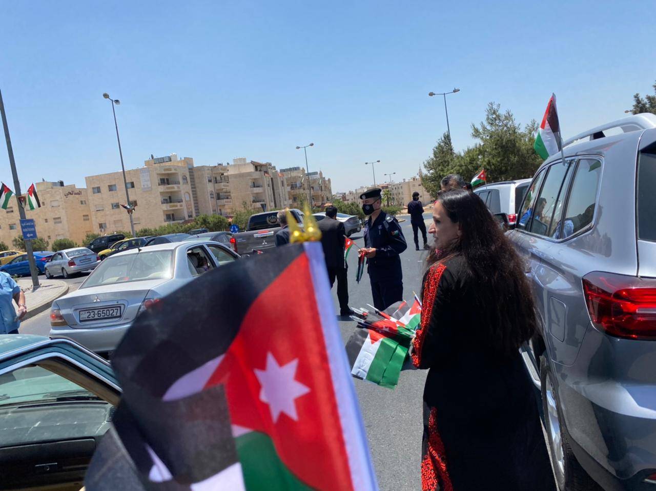 كما تخلل هذه الفعالية الاغاني الوطنية وقصائد شعرية تتغنى بالوطن وقائد الوطن جلالة الملك عبدالله الثاني ابن الحسين المعظم وتوزيع اعلام على المركبات ضمن منطقة اختصاص طارق.
