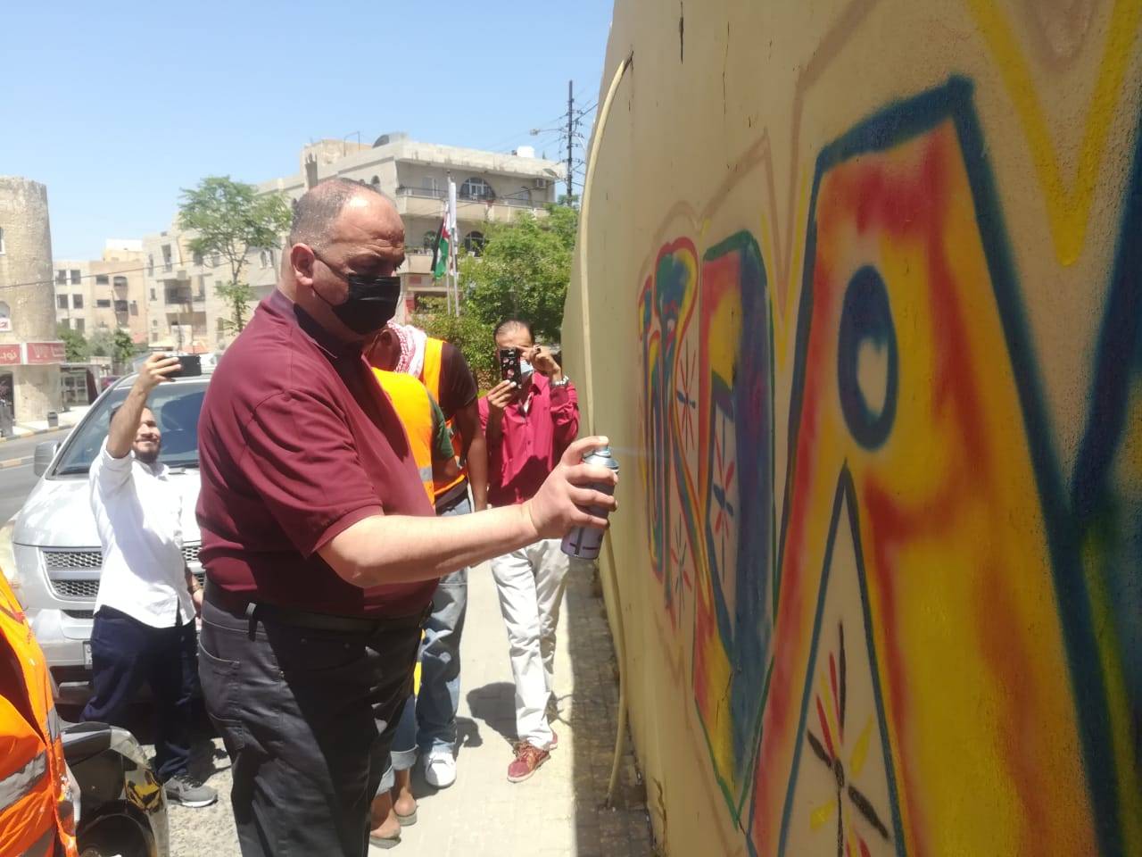 تحت رعايه عطوفه متصرف لواء ماركا عاصم النهار وبحضور مساعد مدير شرطه شمال عمان المقدم فراس مقدادي رئيس مركز امن طارق و مدير امانه منطقه طارق ومفرزة الامن الوقائي ومفرزة الشرطة المجتمعيةوأعضاء المجلس الامني المحلي تم رسم أكبر جدارية في منطقة طارق احتفالا بعيد الاستقلال 75.