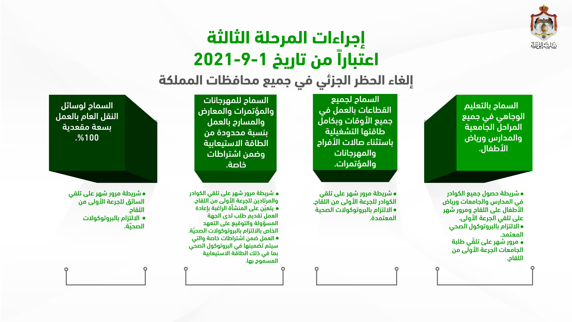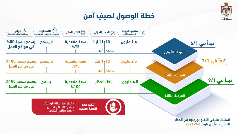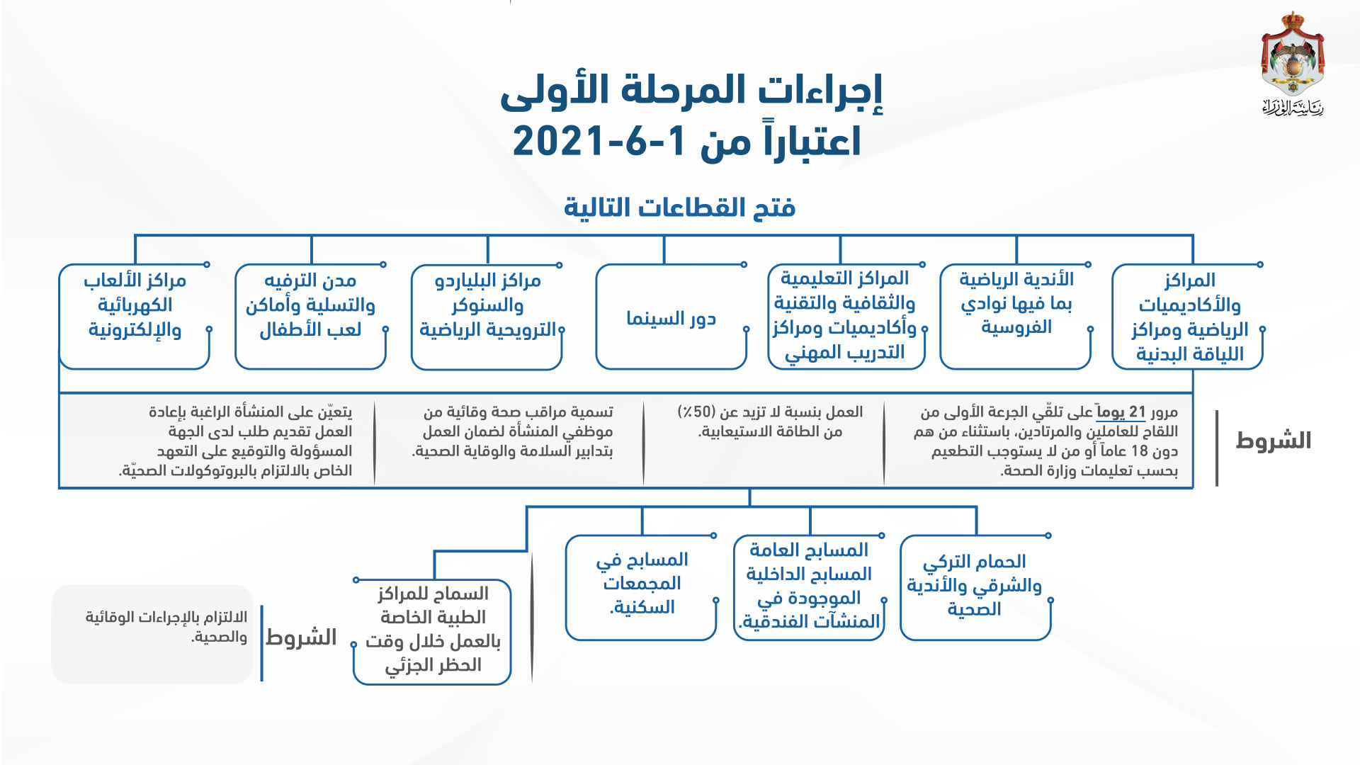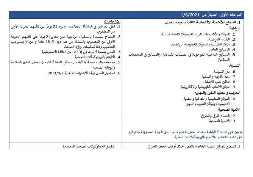 أعلنت الحكومة الأربعاء، خطتها لفتح القطاعات، وذلك على 3 مراحل حتى بداية أيلول المقبل. وتالياً نص الخطة: