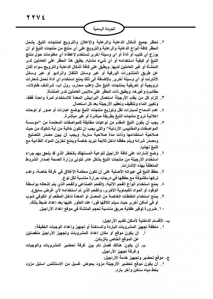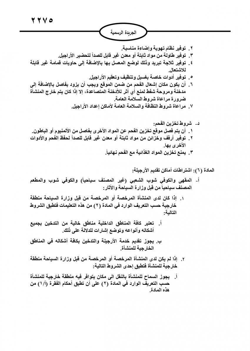 وتضمنت التعليمات شروط عامة للمنشآت التي تقدم خدمة الأرجيلة.