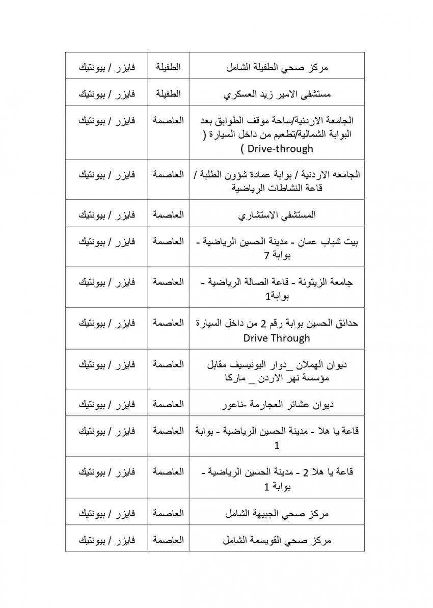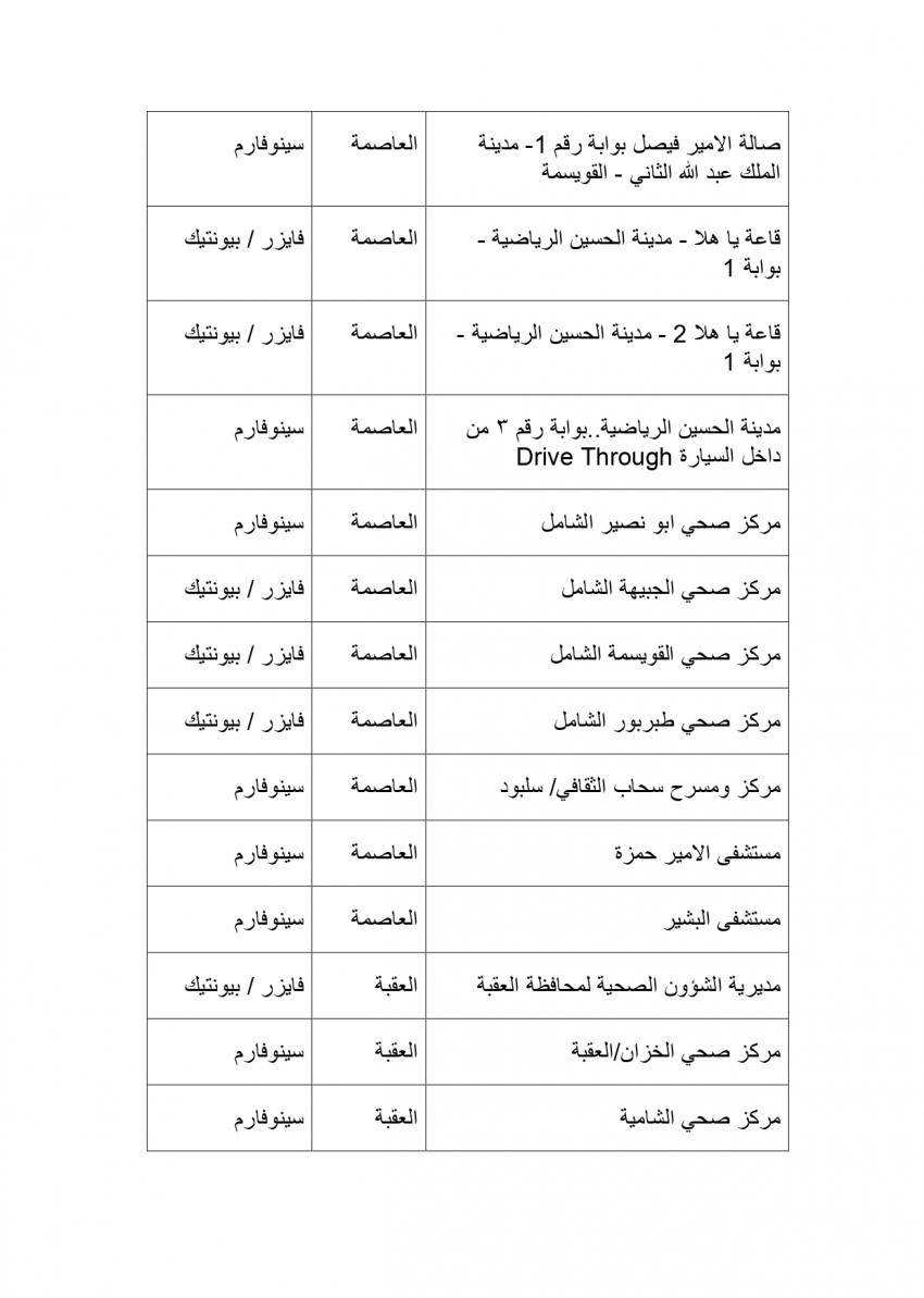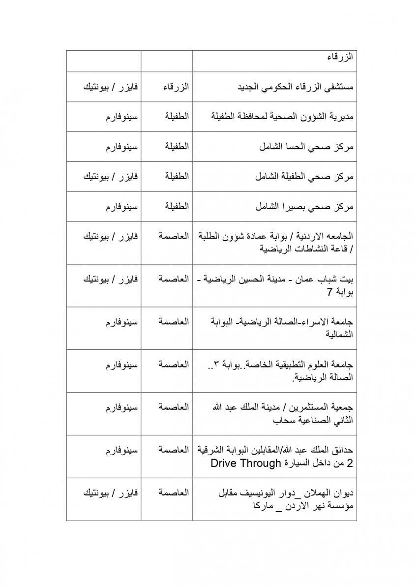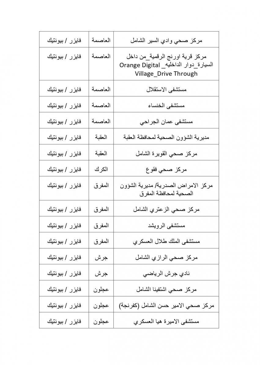 وتنوه وزارة الصحة أيضا أنه باستطاعة من تخلف عن اخذ الجرعة الثانية سابقا التوجه الى احد هذه المراكز وبدون موعد مسبق لاخذ جرعته الثانية من احد هذه المراكز التي تتوافر فيها نفس نوع جرعة المطعوم التي تلقاها سابقا وبدون موعد مسبق، مع ضرورة الانتباه الى نوع الجرعة الاولى من المطعوم التي تلقاها سابقا.