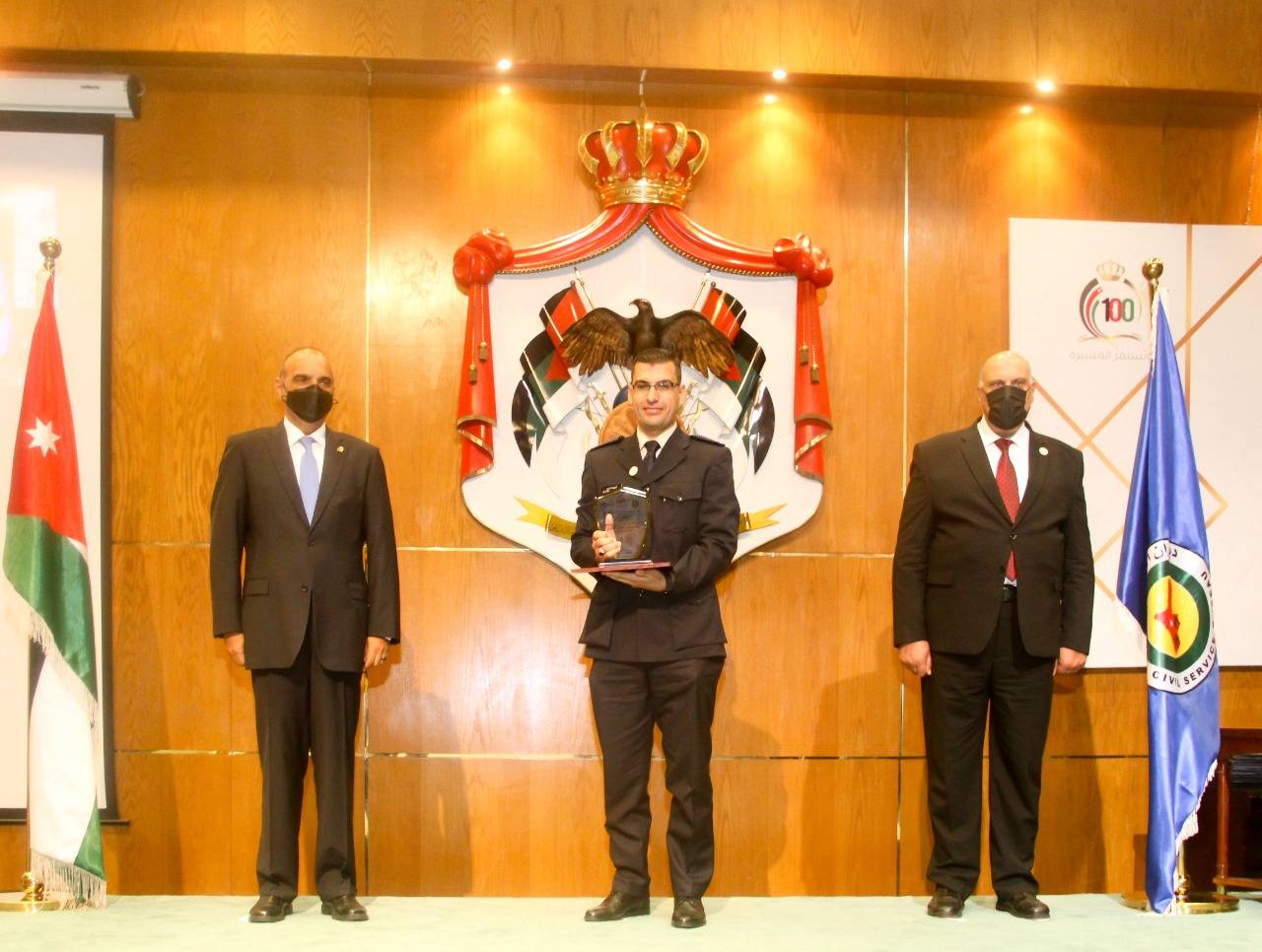 نبض البلد -حصدت دائرة الجمارك الأردنية على ثلاث جوائز ضمن جائزة الموظف المثالي ، جاء ذلك خلال الحفل الذي اقامه ديوان الخدمة المدنية في المركز الثقافي الملكي برعاية دولة رئيس الوزراء الدكتور بشر الخصاونة اليوم الاثنين الموافق 26/7/2021 بدورتها الثانية عشر للعام 2020 والتي فاز بها (23) موظفاً من كافة الوزارات والمؤسسات والدوائر الحكومية ، ويأتي حفل التكريم ضمن احتفالات المملكة بمئوية الدولة الأردنية ، حيث حصل كل من عقيد جمارك أحمد العرمان على جائزة الموظف المثالي في الخدمة المدنية عن الفئة القيادية / المركز الثاني و رائد جمارك محمد بشير أحمد القادري جائزة الموظف المثالي عن الفئة التخصصية / المركز الأول و ملازم أول جمارك أنس عنان على جائزة الموظف المثالي عن الفئة التخصصية / المركز الأول.