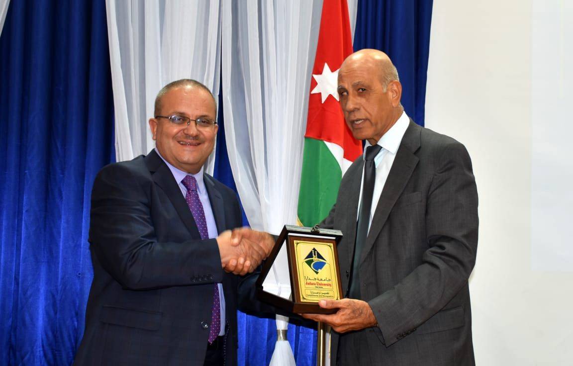 نبض البلد -استضافت جامعة جدارا وبرعاية رئيس الجامعة معالي الأستاذ الدكتور محمد طالب عبيدات وحضور الحاكمي الأكاديمية من عمداء الكليات ونوابهم ومساعديهم ومساعدي الرئيس ومدراء المراكز ورؤساء الأقسام وجزء من أعضاء الهيئة التدريسية؛ إستضافت مدير مكتب ايراسموس بلس في الأردن الأستاذ الدكتور أحمد أبو الهيجاء للحديث حول البرنامج، والمنح والمشاريع التي يقدمها والفرص والبرامج المتوفرة لأعضاء الهيئة التدريسية والطلبة.
