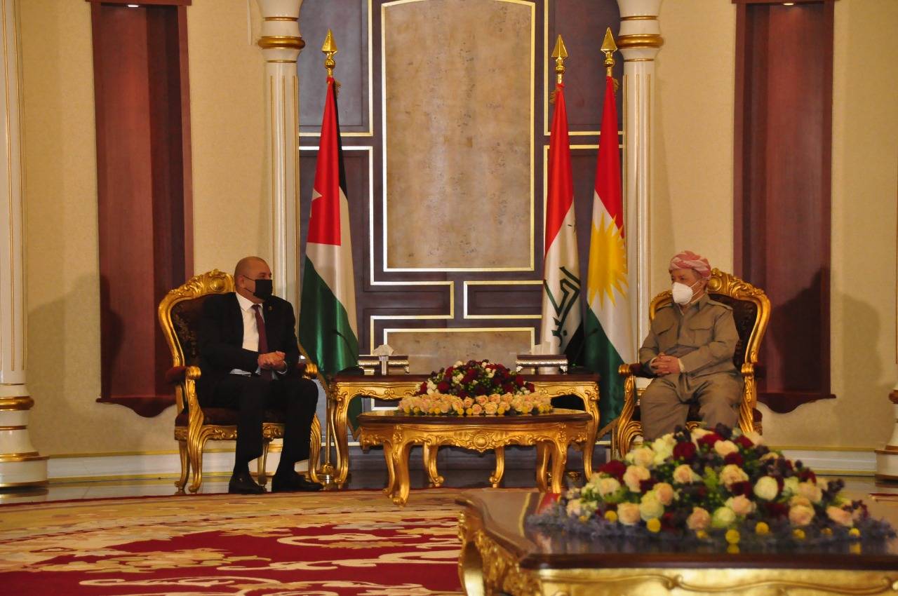 نقل رئيس مجلس النواب المحامي عبد المنعم العودات تحيات جلالة الملك عبد الله الثاني إلى رئيس الحزب الديمقراطي الكردستاني مسعود بارزاني، وذلك خلال زيارة قام بها العودات والوفد البرلماني المرافق إلى أربيل عاصمة إقليم كردستان العراق اليوم الأحد بحضور السفير الأردني في العراق منتصر العقله.