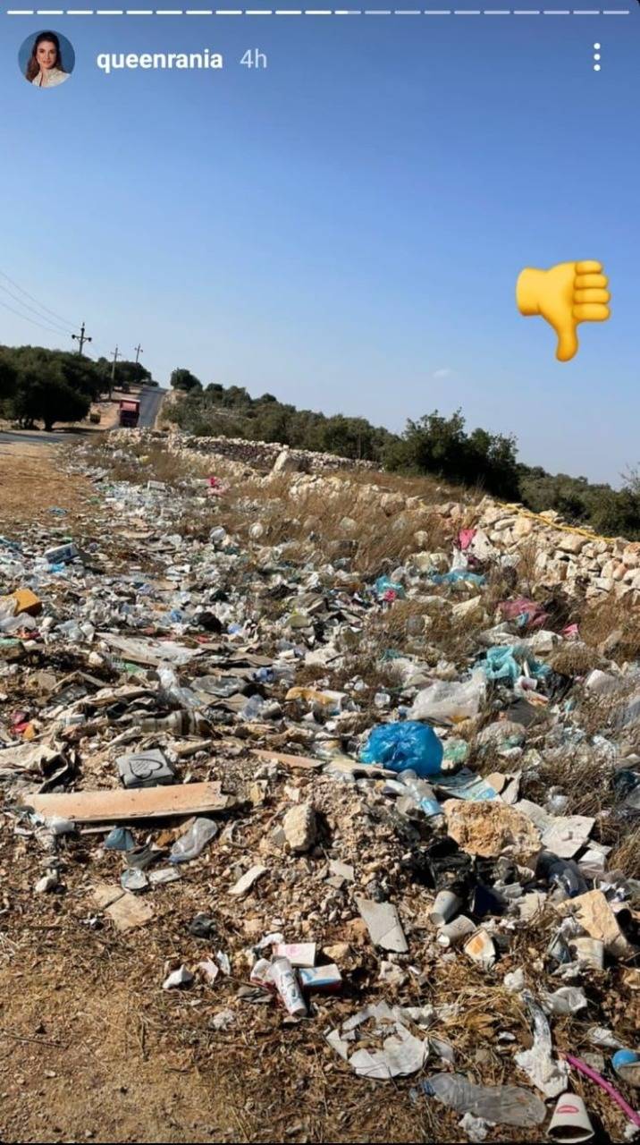 وجاءت الحملة على ضوء الصورة التي نشرتها الملكة مساء الاثنين معبرة فيها عن استيائها من القاء النفايات بشكل عشوائي في غابات برقش، بعد مشاركة جلالتها في إحدى مسارات درب الأردن بمنطقة غابات برقش.