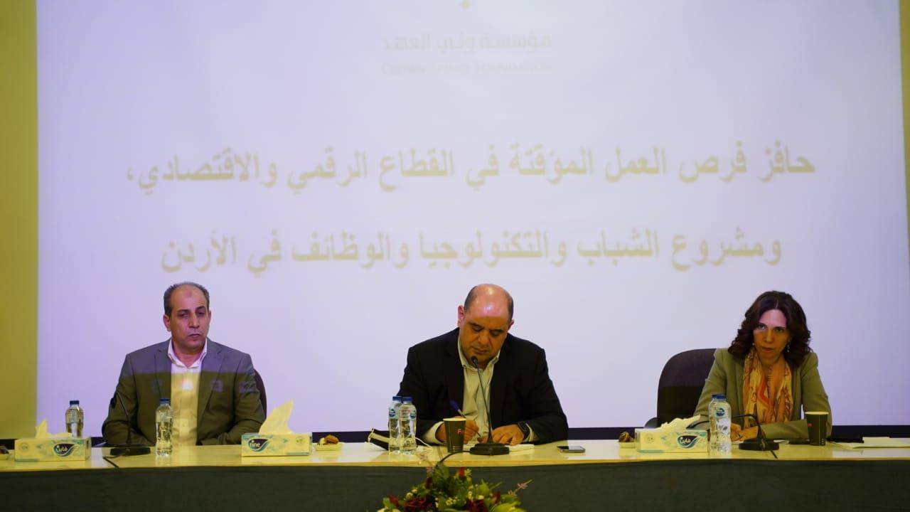 نبض البلد -نظّمت مؤسسة ولي العهد اليوم جلسة حواريّة مع الشباب والشابات في محافظة معان حملت عنوان "حافز فرص العمل المؤقتة في القطاع الرقمي والاقتصادي، ومشروع الشباب والتكنولوجيا والوظائف في الأردن"