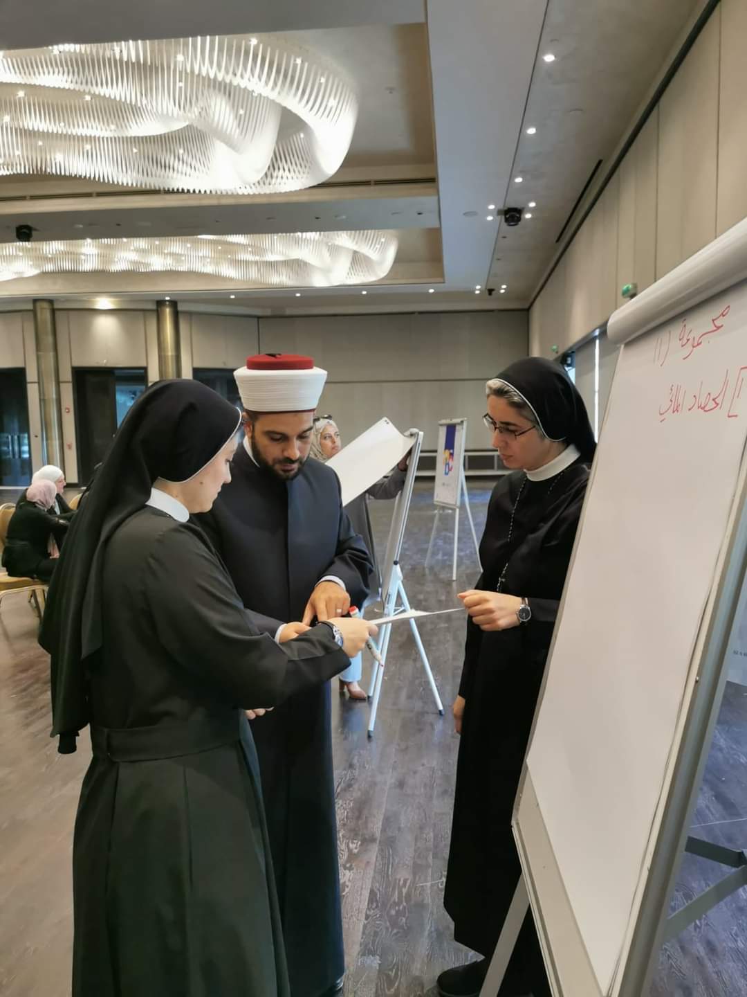 من جانبها قدم ممثلي وكالة الـ (GIZ) الالمانية عرضا للمبادرات التي نفذها فريق المشروع والانجازات التي تحققت خلال العام الحالي حيث تم عرض فلم قصير عن ما تم انجازة مع الجهات المشاركة منذ بداية المشروع وركزت على دورالواعظات وأساتذة الجامعات والأئمة والراهبات والقساوسة في توعية المجتمع المحلي على حسن استخدام المياه لمواجهة شح المياه من خلال إطلاق العديد من المبادرات منها عمل ورشات السباكة للقطاع النسائي في كافة المحافظات بالتعاون مع وزارة المياه والري /سلطة المياه وعقد مبادرات توعية مائية لذوي الاحتياجات الخاصة وفئة المكفوفين والأطفال و للعاملين في الكنائس كذلك المساهمة في تحسين كفاءة استخدام المياه في المساجد ومعالجة المياه الرمادية وإعلان دائرة الإفتاء العام عن 8 فتاوى تحرم سرقة المياه وعمل مناهج ومساقات دراسية on line لطلبة المدارس والجامعات ويتم تدريسها الآن.