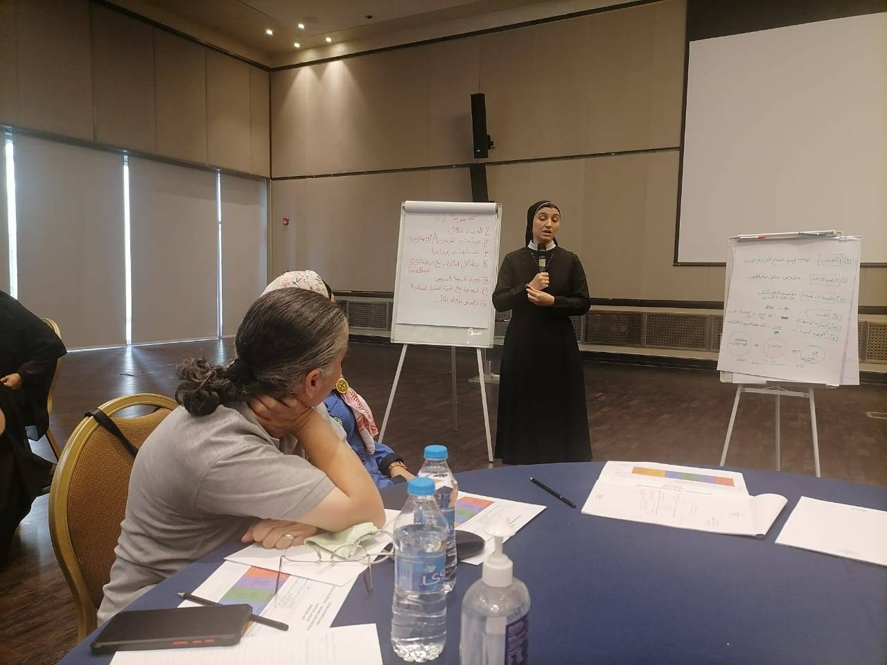 في إطار التعاون المستمر مع الشركاء والوزارات والمؤسسات الحكومية والخاصة والجامعات ومؤسسات المجتمع المحلي والهيئات الدينية وضمن النشاط التوعوي المجتمعي لوزارة المياه والري /سلطة المياه من خلال برامج تؤكد على ضرورة تقليل الفاقد المائي وترشيد الاستهلاك المائي المنزلي والمؤسسي لدى المواطنين وفئات القطاع النسائي والأطفال وطلبة المدارس ومختلف الشرائح - شاركت وزارة المياه والري /سلطة المياه شؤون الاعلام والاتصال في الورشة التدريبية يوم الخميس 16 ايلول 2021 حول التخطيط السنوي للتوعية المائية التي عقدت في عمان بالتعاون مع الـ (GIZ) وبحضور وزارة الاوقاق والشؤون والمقدسات الاسلامية ودائرة الافتاء العام والواعظات ومجلس الكنائس والراهبات والقساوسة وأساتذة الجامعات وجمعية الكشافة والمرشدات ضمن جهود نشر ثقافة الوعي المائي في مشروع تحسين كفاءة استخدام المياه المجتمعي وبرنامج النظافة والصرف الصحي.