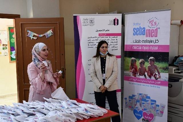 وبحضور كادر طبي متخصص وعدد من الطلبة المتدربين في الجامعة و بالتعاون مع شركة سيباميد للمستحضرات الطبية و التجميلية التي قامت بتوزيع منتجاتها مجانا على الأطفال والزهرات الأيتام، إضافة إلى أن كادر الجامعة قد وزع الحقائب المدرسية على الاطفال الأيتام أيضا .