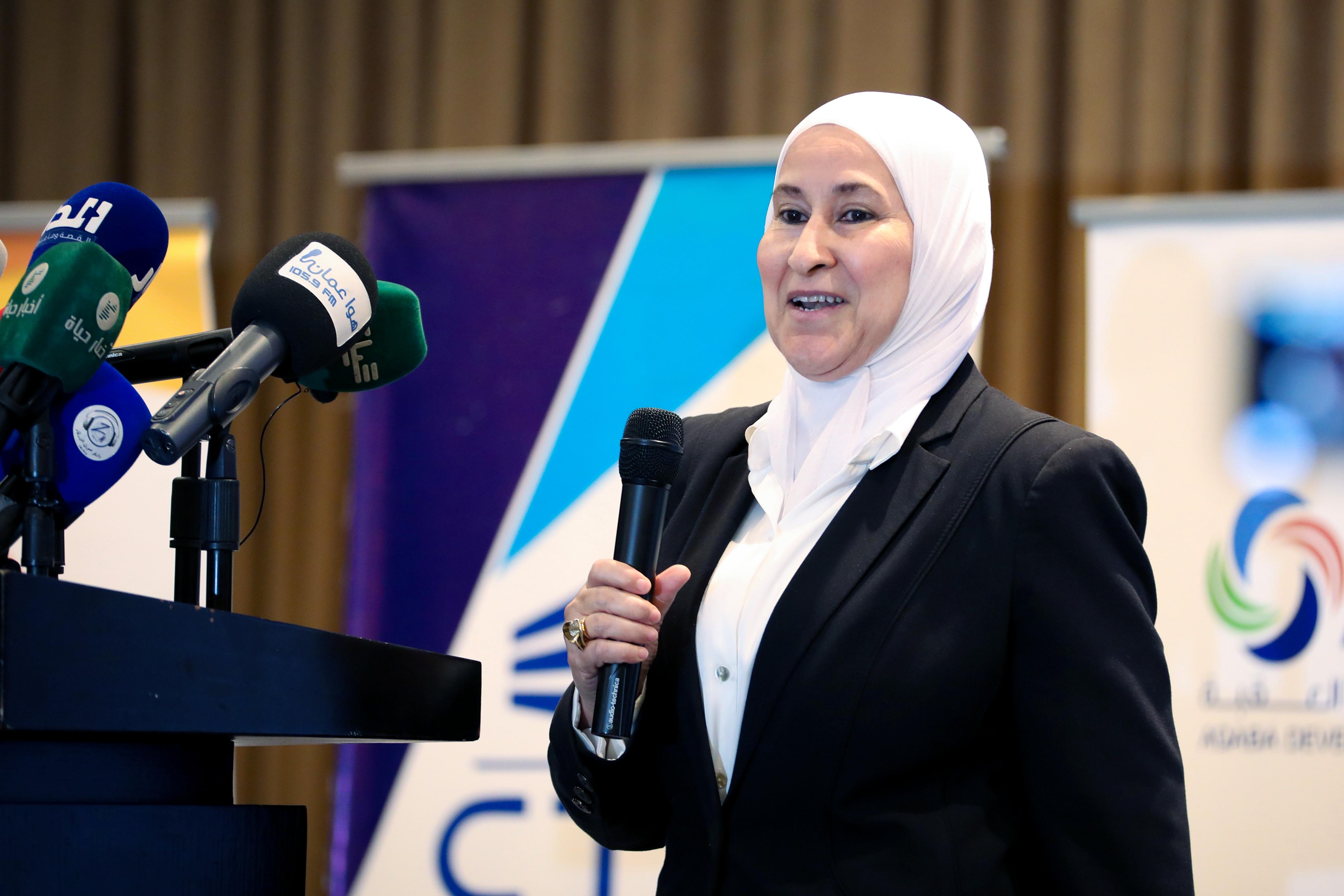 مديرة وحده الصحة والسلامة المهنية والبيئة في شركة العقبة لادارة وتشغيل الموانىء شرحا وافيا حول تطور الشركة كخلف قانوني لمؤسسة الموانىء الاردنية وخطط تطويرها وتحديثها على جميع الاصعدة