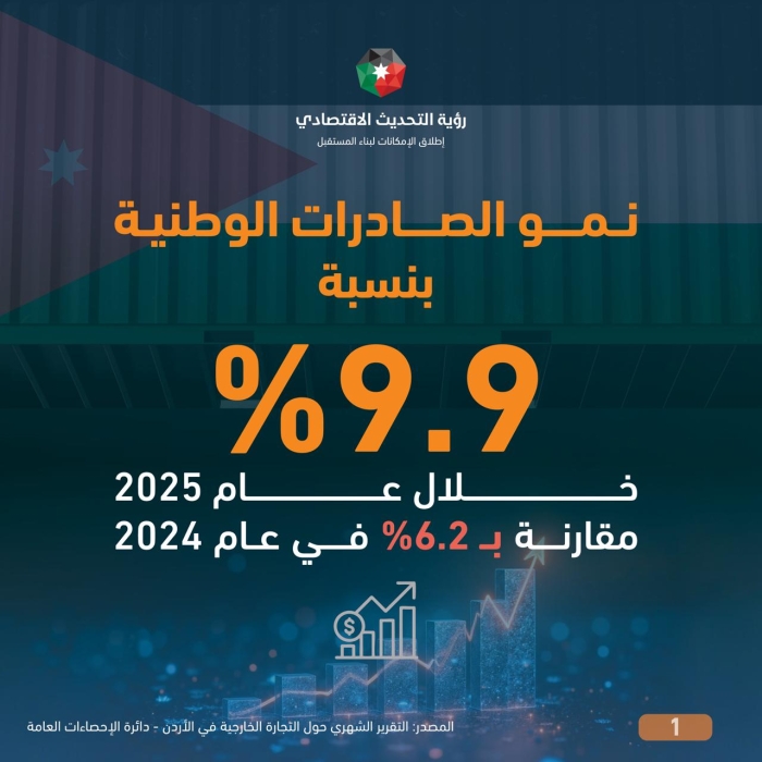 الإحصاءات: نمو الصادرات الوطنية بنسبة 9.9% خلال عام 2025