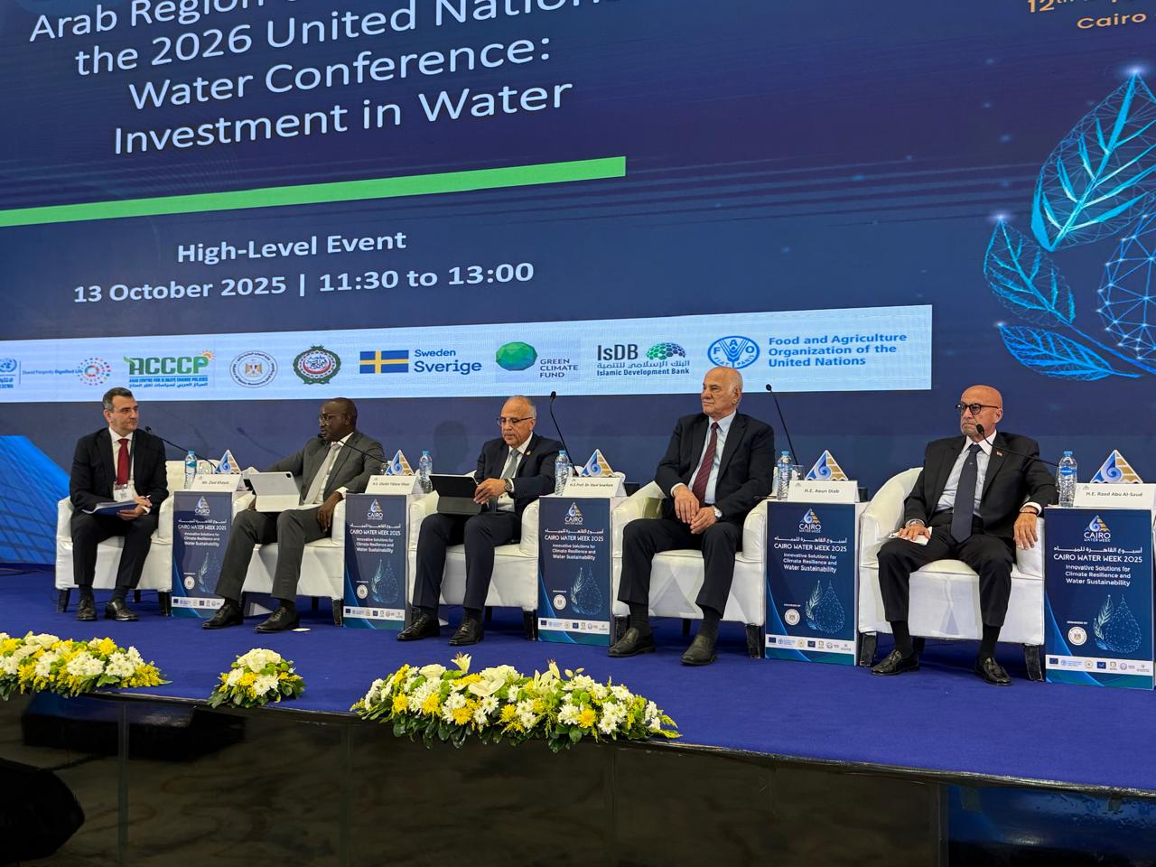 وزير الموارد المائية المصري د. هاني سويلم استعرض رؤية مصر للاستثمار في مجال استدامة المياه، مؤكدا بأن تحقيق الأمن المائي لا ينفصل عن تحقيق الاستدامة المالية والقدرة على التكيف مع التغيرات المناخية، مبينا ان مصر نفذت استثمارات وطنية ضخمة فى قطاع المياه ، داعيا إلى آليات تمويل عاجلة مبتكرة، ومبادرات إعفاء من الديون، وزيادة التمويل الميسر الموجه للدول الأكثر هشاشة ،مشددا على اهمية تقديم رؤية عربية مشتركة لمؤتمر الامم المتحدة تعبر بوضوح عن الأولويات العربية بما يضمن الوصول العادل للتمويل المناخي والتنمية، وزيادة الدعم للتكيف في المناطق الشحيحة بالمياه، وتعزيز التعاون لتعبئة الاستثمارات العامة والخاصة .