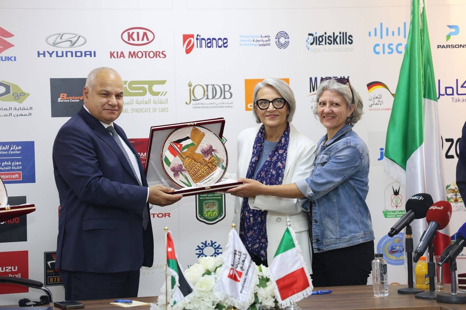 وجرى توقيع الاتفاقية برعاية رئيس مجلس إدارة مؤسسة التدريب المهني ووزير العمل معالي الدكتور خالد البكار، وبحضور مدير عام المؤسسة الدكتور أحمد مفلح الغرايبة، ومدير عام مركز CESF المهندس عدنان السواعير وسعادة السفير الإيطالي في عمّان Luciano Pezzotti لوتشيانو بيتزوتّي .