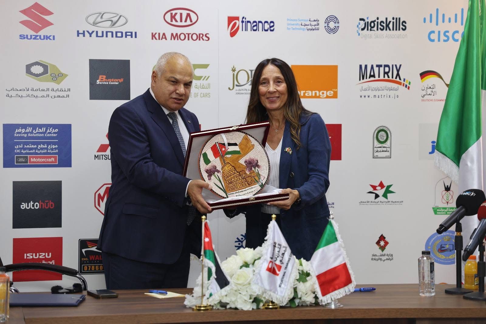 مشددا انه سيتم العمل على تنفيذ برامج تدريبية متقدمة تشمل اللغة الإيطالية التطبيقية، والتدريب العملي في مجالات الذكاء الاصطناعي، والتحول الرقمي، والتقنيات الخضراء، بما يتماشى مع متطلبات سوق العمل الأوروبي. واستعرض خطة المؤسسة وآليات التنفيذ، التي تعكس روح الابتكار والتحديث في مؤسسة التدريب المهني الأردنية.
