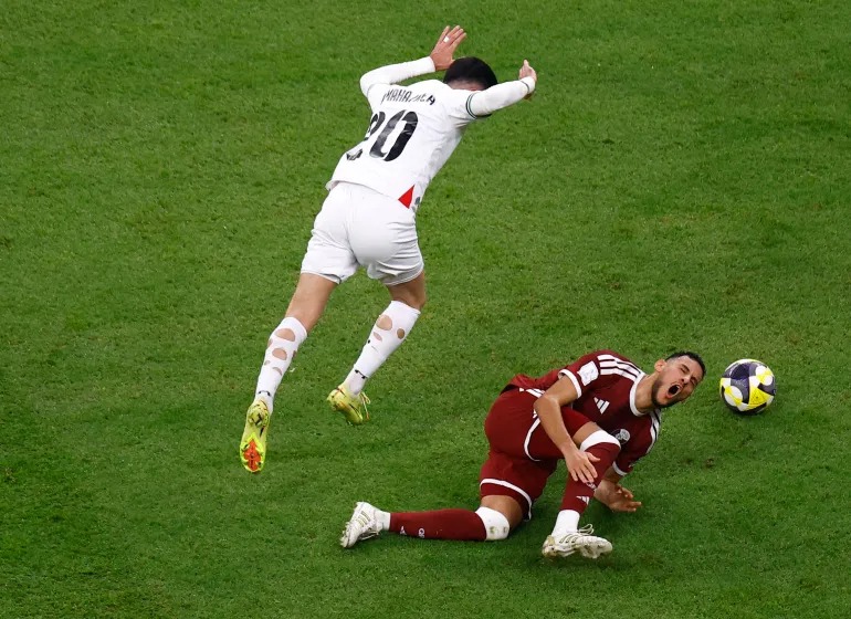 مرّت 30 دقيقة من اللقاء والنتيجة سلبية قطر تستحوذ، وفلسطين تقاتل وتغلق كل المساحات، ما صعّب على أصحاب الأرض تشكيل أي تهديد حقيقي.
