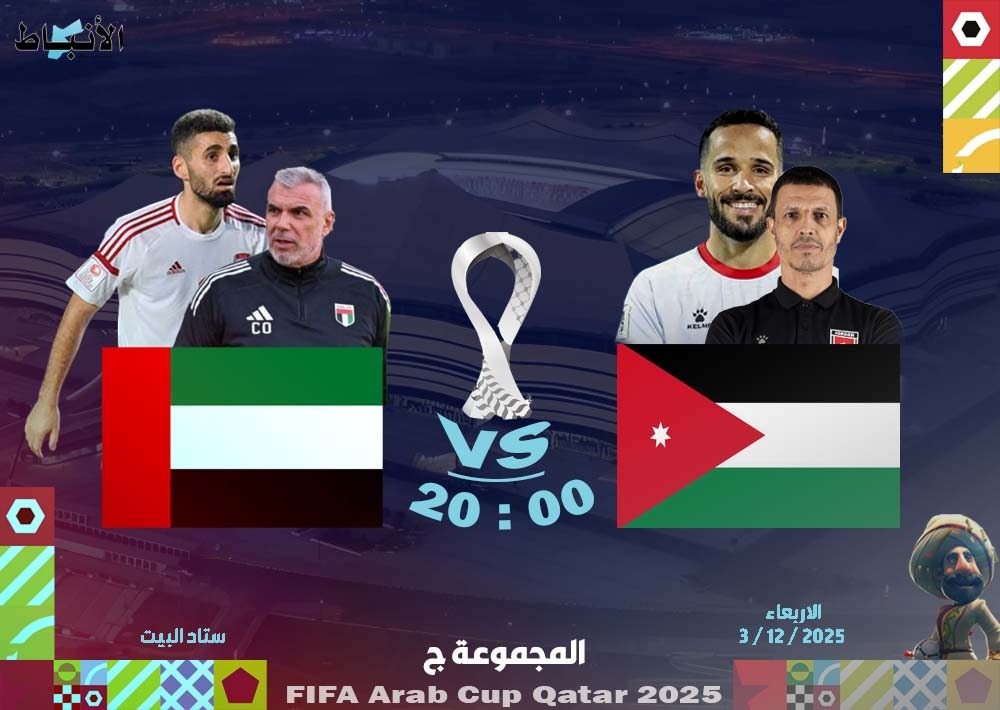 استكمالا لـ بطولة كأس العرب وتحديدا المجموعة "ج" في الجولة الأولى من دوري المجموعات يلتقي المنتخب الأردني والإماراتي في اختبار حقيقي للنشامى أمام خصم خليجي يملك خبرات مختلفة لـ تتجه الأنظار مساء اليوم إلى ملعب البيت في الدوحة، حيث أن المباراة لا تحمل فقط ثلاث نقاط مبكرة وإنما هي فرصة لكلا منتخب لـ ترسيخ التوجهه الفني وإرسال رسالة مبكرة للبقية في المجموعة، النشامى يدخلون اللقاء تحت قيادة جمال السلامي بـ طموح واضح للاستثمار في التجانس الحالي والتحضير القوي بينما يسعى الأبيض الإماراتي بقيادة كوزمين أولاريو إلى فرض شخصيته واستعادة الزخم بعد فترة من التقلبات في النتائج .