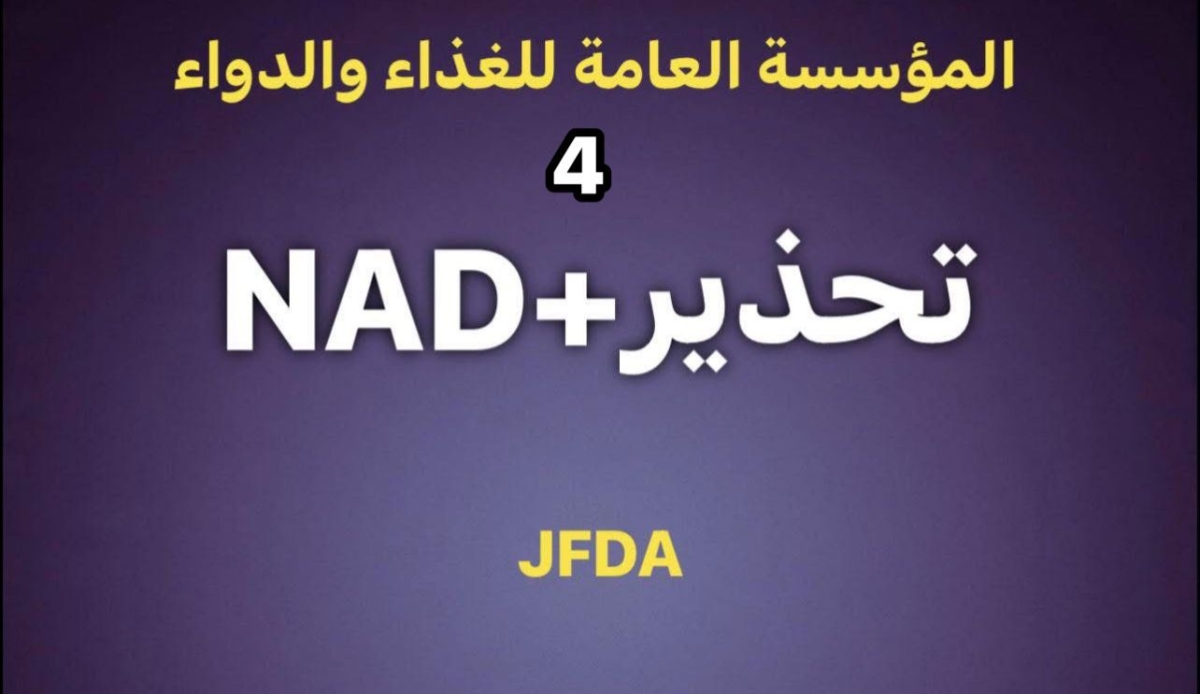1- شكل حقن الوريدية NAD+ Injection وهي غير مرخصة وغير مجازة من قبل المؤسسة العامة للغذاء والدواء وليس لها وكيل معتمد في المملكة، كما أنه يروج لها بشكل مضلل عبر مواقع التواصل الاجتماعي على انها تكافح الشيخوخة وتجدد الخلايا وتحسن وظائف الدماغ وتزيد حرق الدهون، علما بعدم وجود أي دراسات علمية تدعم فعالية ومأمونية استخدامها بالادعاءات التي يروج لها.