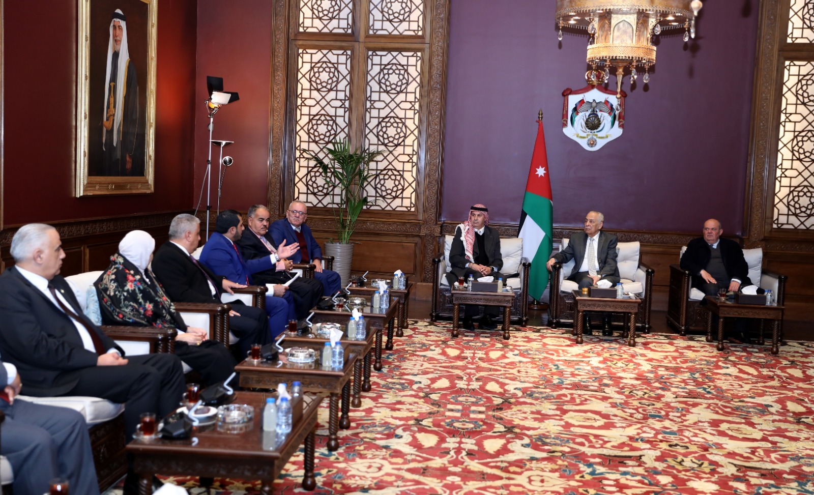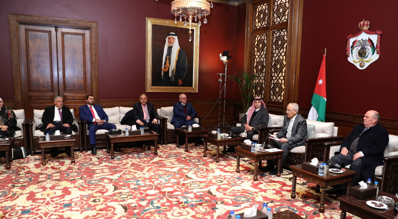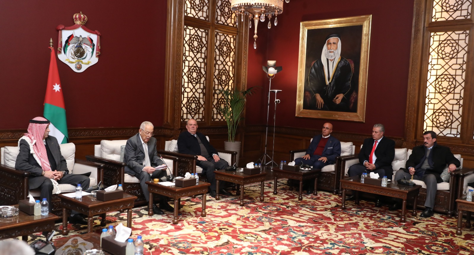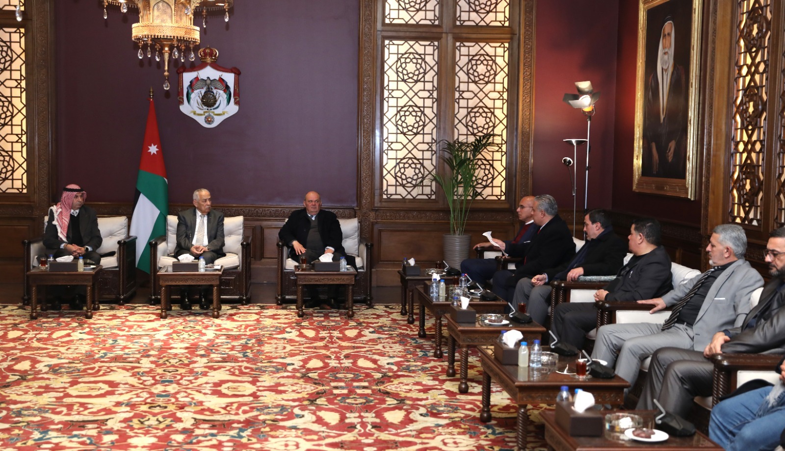 التقى رئيس الديوان الملكي الهاشمي، يوسف حسن العيسوي، وفدا ثقافيا وشبابيا من منتدى الحصن للتراث والثقافة والفنون وهيئة شباب بني عبيد، اليوم الخميس، في الديوان الملكي الهاشمي.