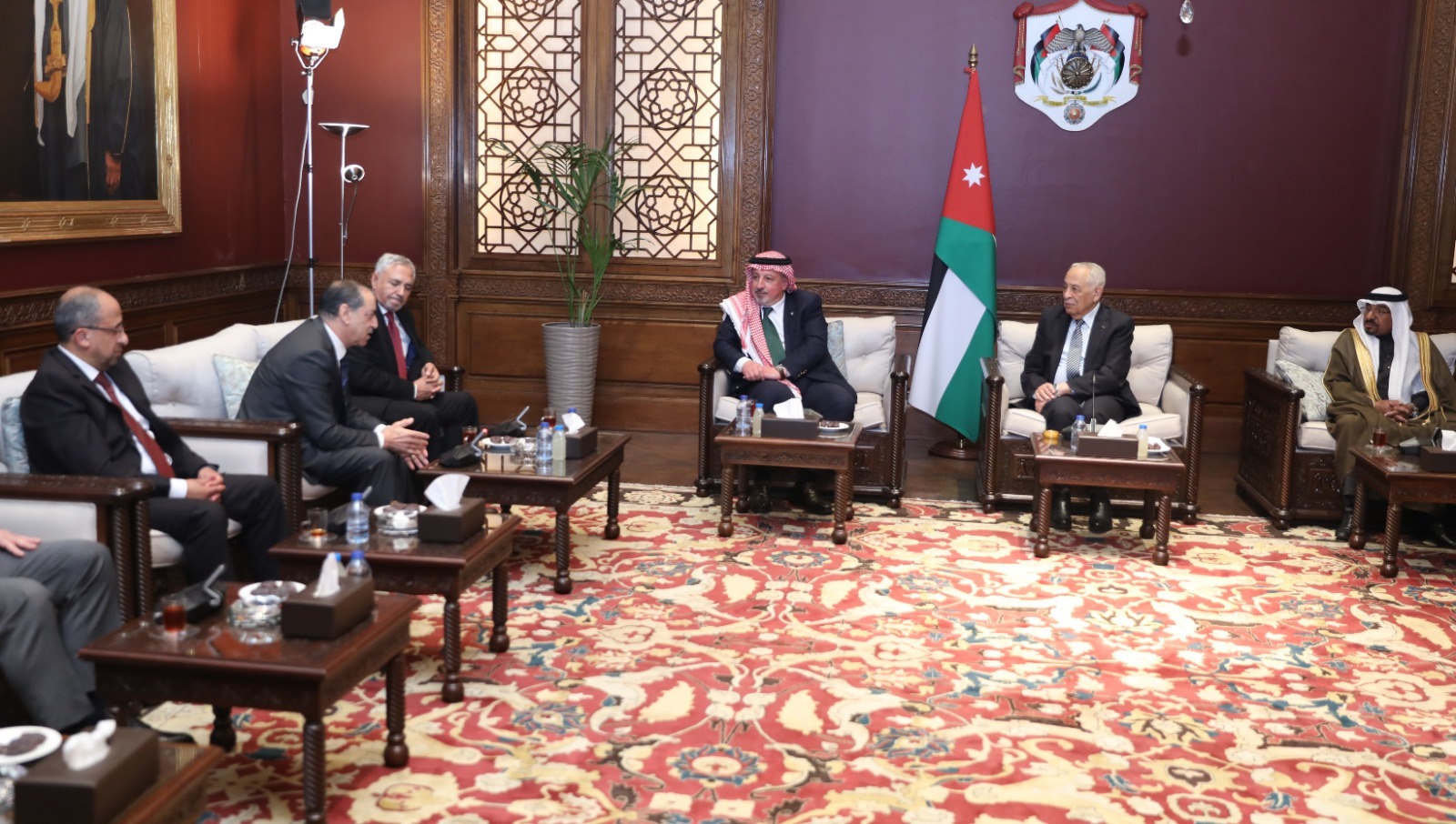 التقى رئيس الديوان الملكي الهاشمي يوسف حسن العيسوي، اليوم الخميس، في الديوان الملكي الهاشمي، وفدًا من أعضاء جمعية اللد، ووفدًا من ملتقى النخبة، في لقاءين منفصلين.