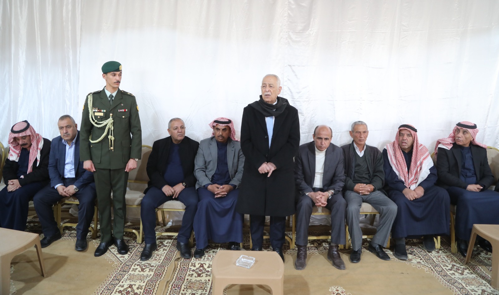 مندوبا عن جلالة الملك عبدالله الثاني وسمو الأمير الحسين بن عبدالله الثاني، ولي العهد، قدم رئيس الديوان الملكي الهاشمي يوسف حسن العيسوي، اليوم الاثنين، واجب العزاء إلى عشيرة الشريف بوفاة المرحوم علي رضوان الشريف المجاغفة، عم محافظ الكرك قبلان الشريف.