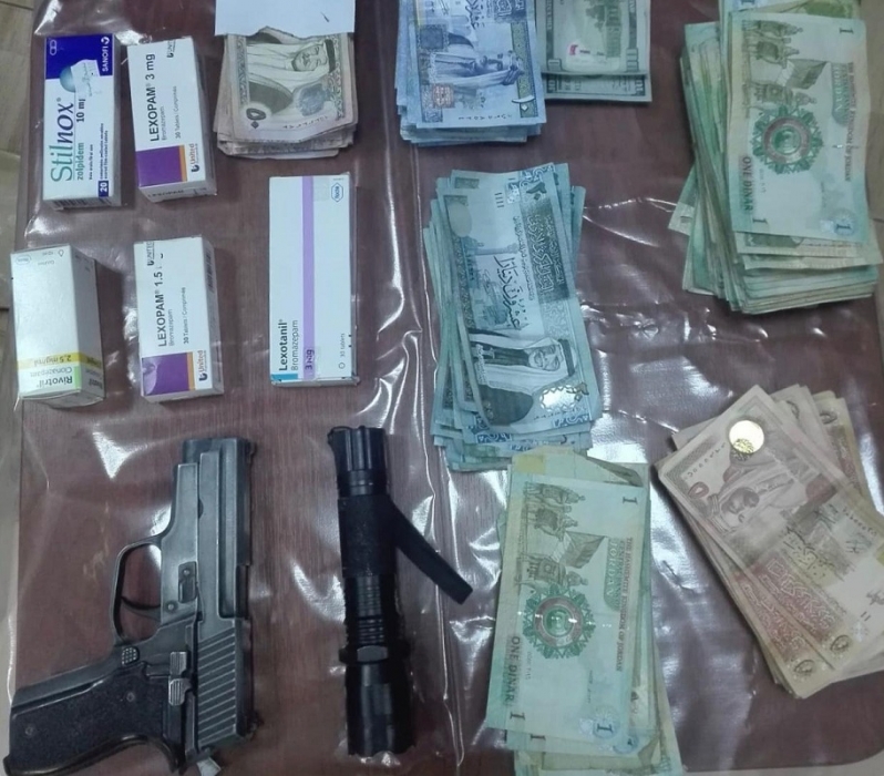 قال الناطق الاعلامي باسم مديرية الامن العام انه وبعد منتصف الليل وردت خمسة بلاغات من صيدليات في اختصاص العاصمة حول قيام شخص مسلح بالدخول اليها وسلب مبالغ مالية متفرقة وادوية تحت تهديد السلاح والفرار من المكان دون وقوع اصابات تذكر ، حيث بوشر التحقيق لتحديد هوية ذلك الشخص والقاء القبض عليه . واضاف الناطق الاعلامي انه فور تلقي تلك البلاغات تم فتح نقاط غلق ونشر الدوريات في محيط المكان و تعميم مواصفات الشخص والمركبة التي يستقلها ليتم وخلال زمن قياسي من تلقي البلاغات القاء القبض على الشخص المشتبه به والذي تبين انه من ذوي الاسبقيات الجرمية والمركبة التي بحوزته . وتابع الناطق الاعلامي انه ضبط بحوزته سلاح ناري ومبالغ مالية متفرقة وادوية متنوعة وبوشر التحقيق معه .