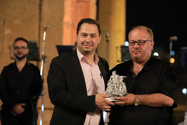 الذي كرمه وفرقته المدير التنفيذي لمهرجان جرش ايمن سماوي في ختام العرض.. جاءت الموسيقى و الموشحات و القصائد وجاءت أعمال الرحابنة وفيروز والتراث الاردني.