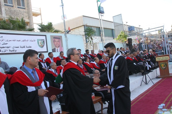 وسلم الاستاذ الدكتور غاندي انفوقة في الحفل الذي اقيم على ملعب الجامعة في السلط وحضره ذوو الخريجين الشهادات على الطلبة الخريجين والبالغ عددهم (952) طالبا وطالبة موزعين على تخصصات الكليتين .