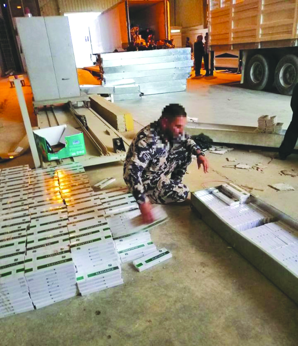 التبغ (السجائر) والمشروبات الكحولية:سجائر بأنواعها المختلفة723681، مشروبات كحولية2000لتر، معسل 6000كغم.