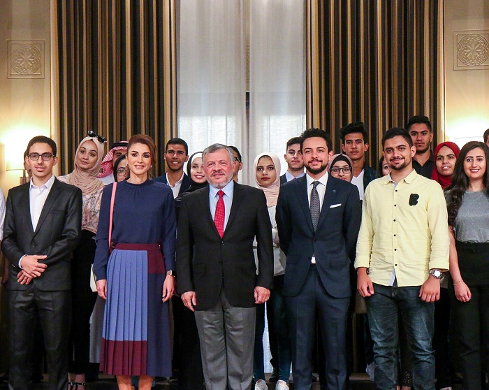 استقبل جلالة الملك عبدالله الثاني وجلالة الملكة رانيا العبدالله وسمو الأمير الحسين بن عبدالله الثاني ولي العهد، في قصر الحسينية أمس الثلاثاء، أوائل الثانوية العامة في مختلف الفروع الدراسية على مستوى المملكة للعام الدراسي 2018-2019. وضم اللقاء عددا من الطلبة من ذوي الإعاقة وطلبة يعانون من مرض السرطان ممن سجلوا قصص نجاح متميزة في امتحانات الثانوية العامة، ومدراء مدارس ومعلمين ومعلمات كان لهم أثر إيجابي في دعم الطلبة وتحفيزهم على المثابرة والتميز، إضافة إلى أهالي الطلبة.