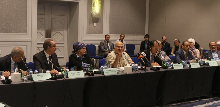 وأضاف سموه "أن تمكين وتفويض القيادات في المحافظات في موضوع التغير المناخي لا بد أن يتطور لخط بياني حواري لجزئيات المسؤولية التي نتحملها معاً إلى جانب الإدارات الحكومية، ولذلك لا بد من التكافل بين الإدارات الحكومية والمراكز البحثية والمواطنين المؤهلين والمنظمات الدولية"، مشيراً إلى أن العقد الاجتماعي يُبنى على التمكين والتفويض للمواطنة. ودعا سموه إلى عقد حوار آخر حول التغير المناخي قائم على التشبيك على أساس الإبداع والتواصل والتكامل مع الأطراف الفاعلة، وأصحاب المصلحة، وذلك لتأكيد العلاقة السببية بين الأطراف الرئيسية، وبناء وتعميق التفاهم بين المشاركين، ودمج جميع اللقاءات والمبادرات التي كانت معزولة وسريعة الزوال كجزء متماسك من الكل، مشيراً سموه إلى أهمية وجود قاعدة معرفية وطنية لتحفيز الإبداع والتواصل والتكامل. وفي حديثه حول أهداف التنمية المستدامة لعام 2030 بين سموه أنه لا يمكن الحديث عن الهدف الثاني من أهداف التنمية المستدامة المتعلق بالجوع بمعزل عن الهدف السادس المتعلق بالمياه، مشيراً إلى ضرورة الاعتراف بأنه لا توجد دولة تستطيع أن تعالج قضاياها المائية بمفردها دون تعاون إقليمي.