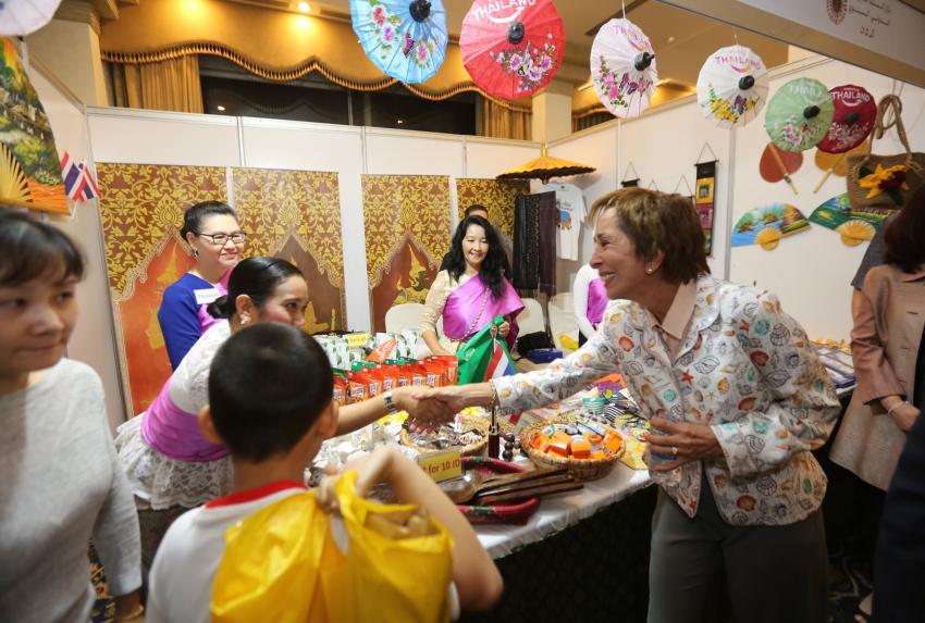واضافت : باسم أطفال مبرة أم الحسين أتقدم بأسمى آيات الشكر والعرفان لكل من شارك في هذا البازار من سفارات وقنصليات وأندية وداعمين والحضور الكرام