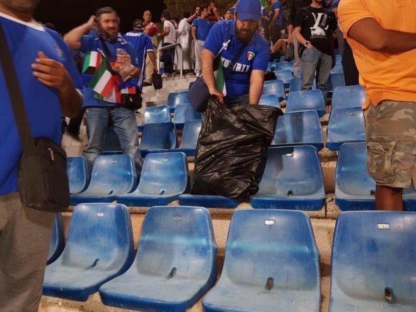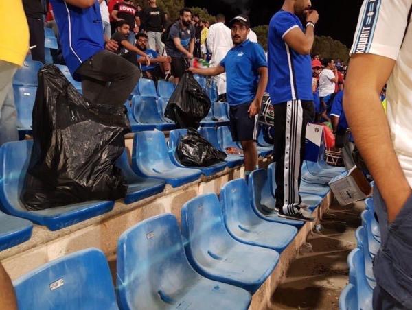نشر ناشطون كويتيون صورا تظهر الجمهور الكويتي ينظف مقاعده بعد إنتهاء مباراة المنتخب الاردني ونظيره الكويتي على ستاد عمان الدولي في العاصمة الاردنية.