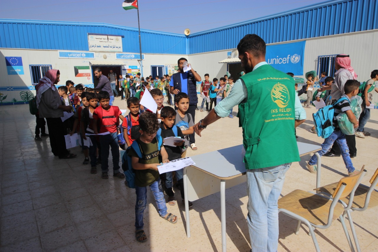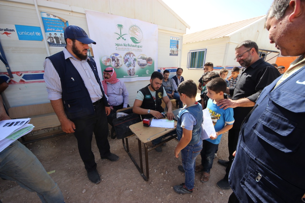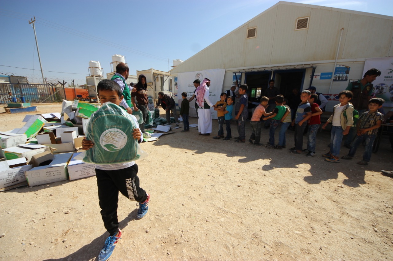 يواصل مركز الملك سلمان للإغاثة والأعمال الإنسانية توزيع الحقائب المدرسية والأدوات القرطاسية على الطلاب والطالبات من أبناء اللاجئين السوريينفي مخيم الزعتري واصلا لمحطته الثالثة ، حيث بلغ عدد المستفيدين من التوزيع (3822) طالباً وطالبة موزعين على (8 ) مدارس .