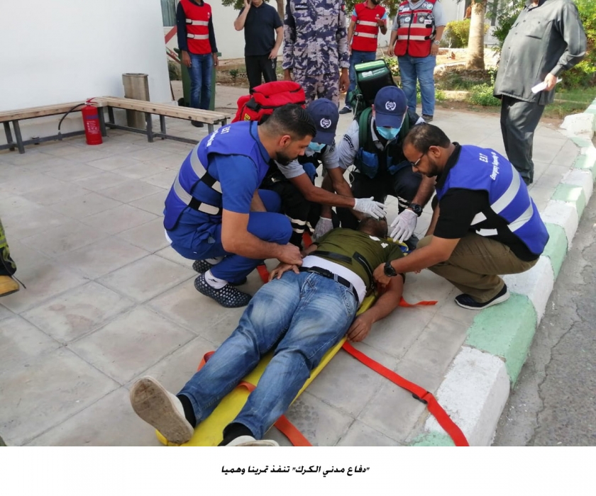 - نفذت مديرية دفاع مدني الكرك اليوم الاثنين، تمريناً لحادث وهمي مفترض لنشوب حريق في الطابق الأول من مستشفى البوتاس ناتج عن تماس كهربائي وامتداده إلى الطوابق العليا ما أدى إلى حدوث بعض الإصابات.
