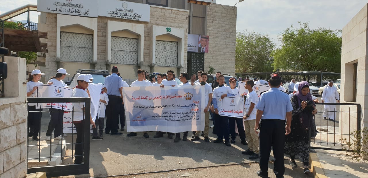 اطلقت وزيرة التنمية الاجتماعية بسمة اسحاقات في محافظة العقبة اليوم الاربعاء مسيرة اليوم العالمي للعصى البيضاء والتي نظمتها جمعية صناع الارادة للاشخاص ذوي الاعاقة من امام مبنى محافظة العقبة ، بمناسبة يوم المكفوف العالمي.