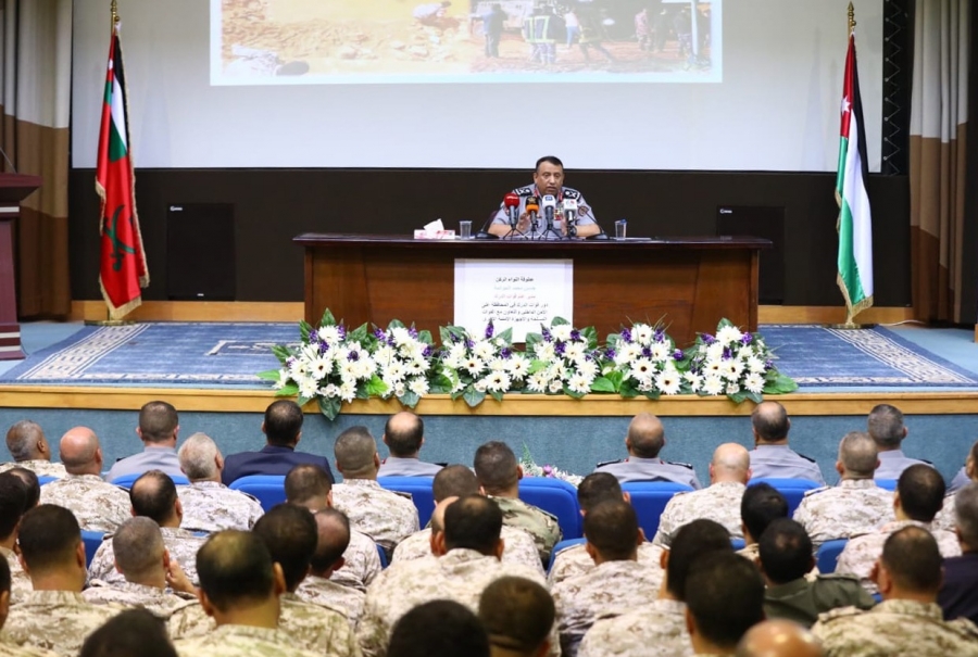جاء ذلك خلال المحاضرة التي ألقاها اليوم في كلية القيادة والأركان الملكية الأردنية، بعنوان: "دور قوات الدرك في المحافظة على الأمن الداخلي"، بحضور آمر الكلية العميد الركن الطيار محمد الصمادي، وهيئة التوجيه.