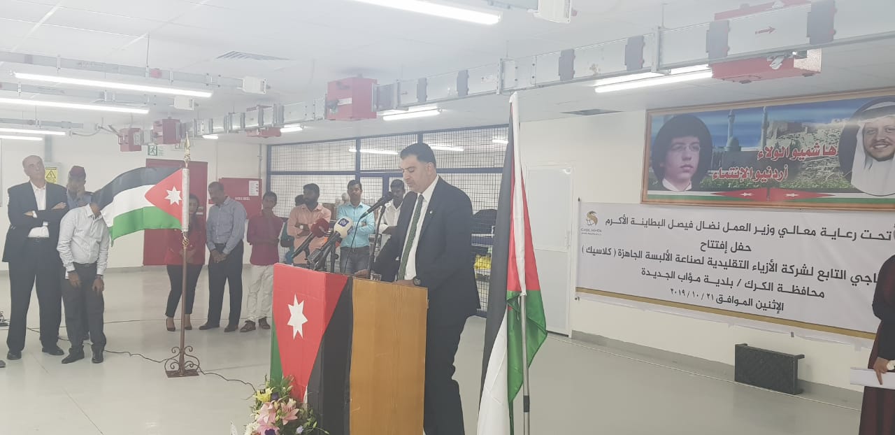 إفتتح وزير العمل نضال فيصل البطاينة اليوم الاثنين الفرع الإنتاجي الجديد لشركة الأزياء التقليدية لصناعة الألبسة, في بلدية مؤاب الجديدة/ في محافظة الكرك, الذي سيوفر نحو 1000 فرصة عمل لأبناء المنطقة.