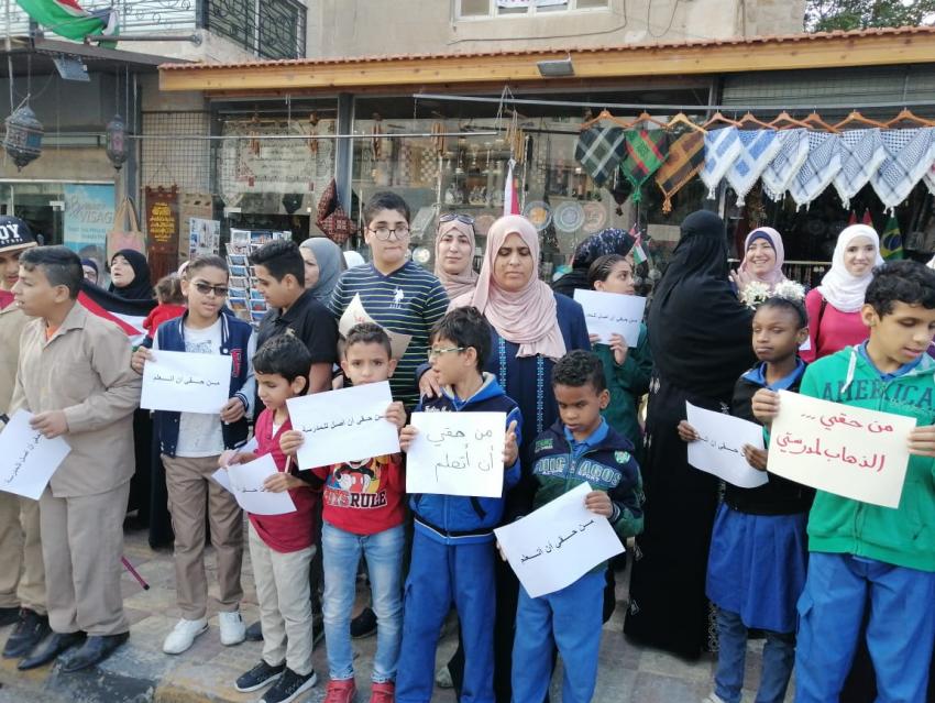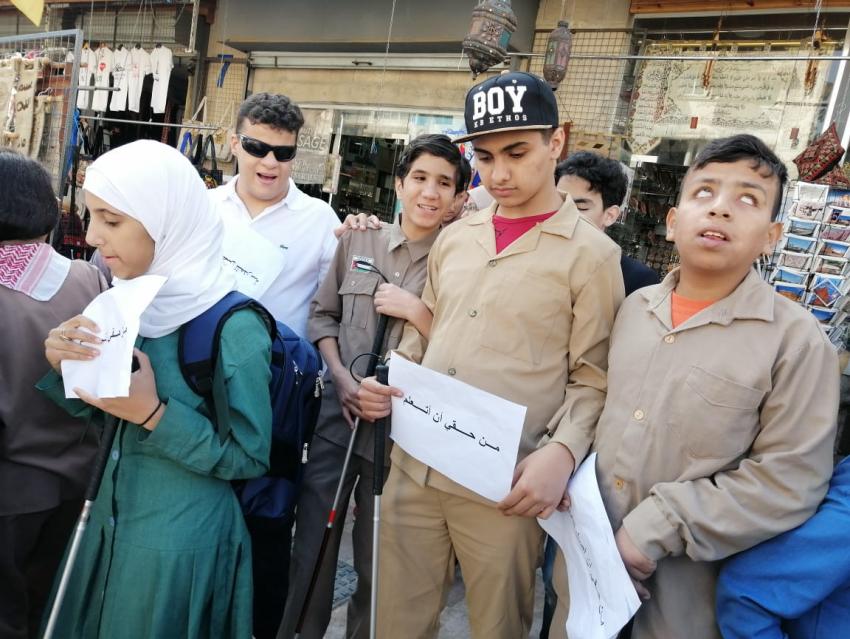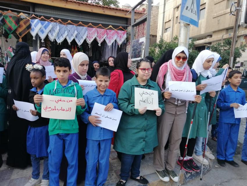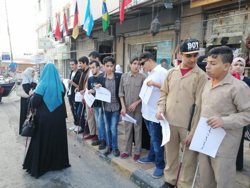 نظم مكفوفون وقفة احتجاجية أمام وزارة التربية والتعليم للدعوة لحل قضية إضراب سائقي وزارة التربية والتعليم وذلك بسبب تعذر وصولهم للمدرسة.