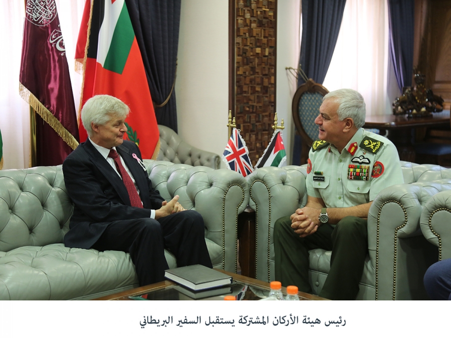 استقبل رئيس هيئة الأركان المشتركة اللواء الركن يوسف احمد الحنيطي, في مكتبه بالقيادة العامة اليوم الخميس، السفير البريطاني في عمان ادوارد اوكدن.