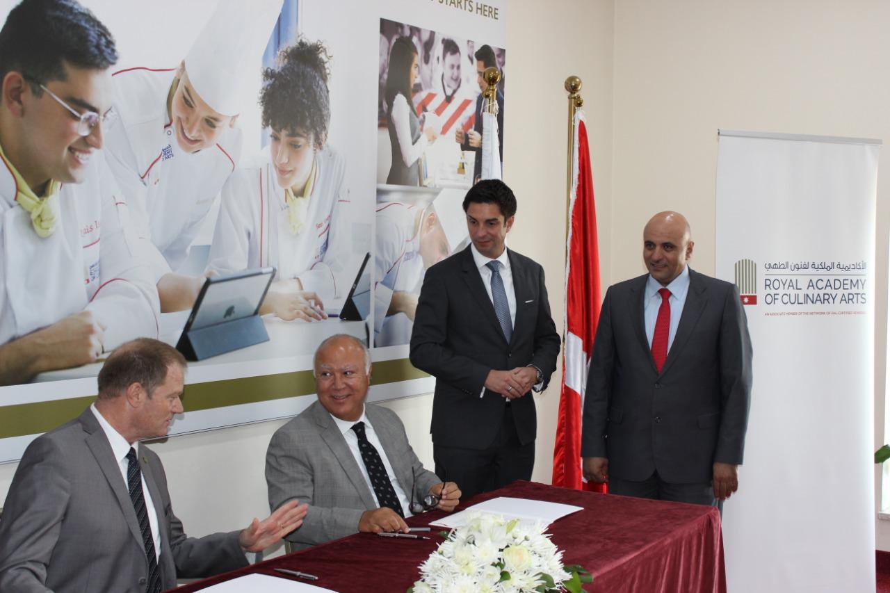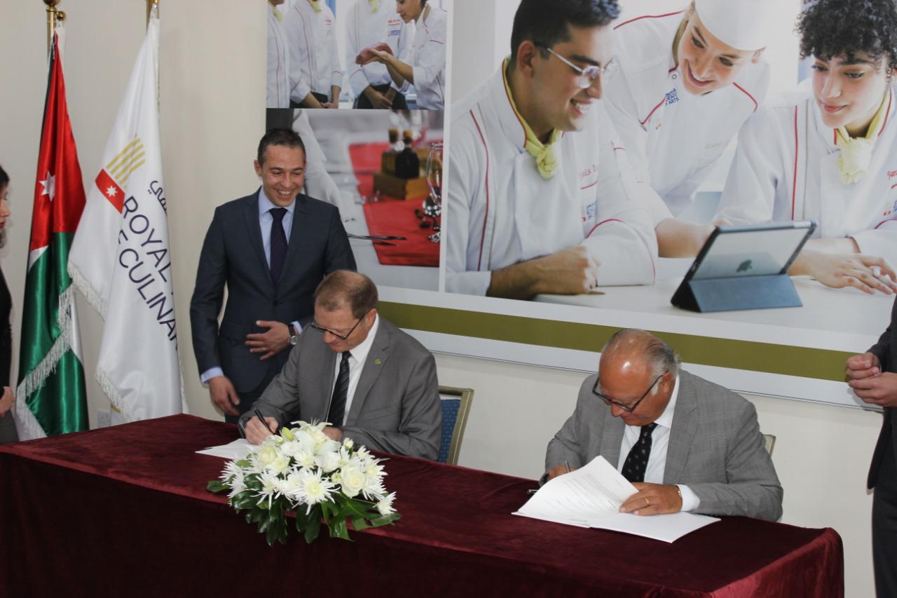 ووقع الاتفاقية ممثلاً عن مجموعة فنادق الانتركونتنتال IHG المدير العام لمجموعة فنادق الانتركونتيننتل في الأردن ولبنان اسامة مسعود، ومدير عام فندق الهوليدي إن البحر الميت ايمانوويل ستافركاكس، وعن الأكاديمية مدير عام الاكاديمية الملكية لفنون الطهي جاكوس روسيل.