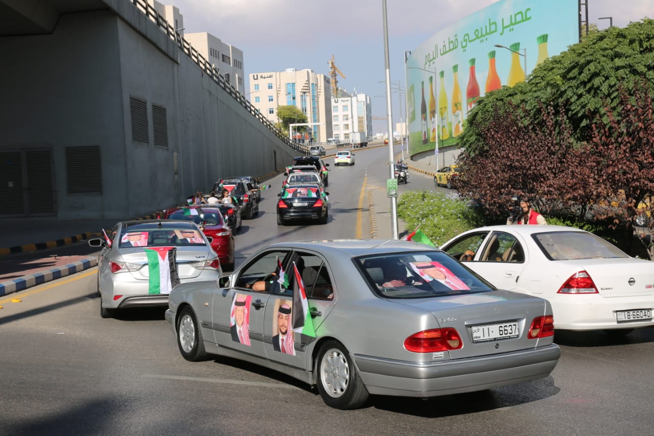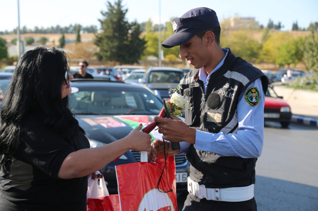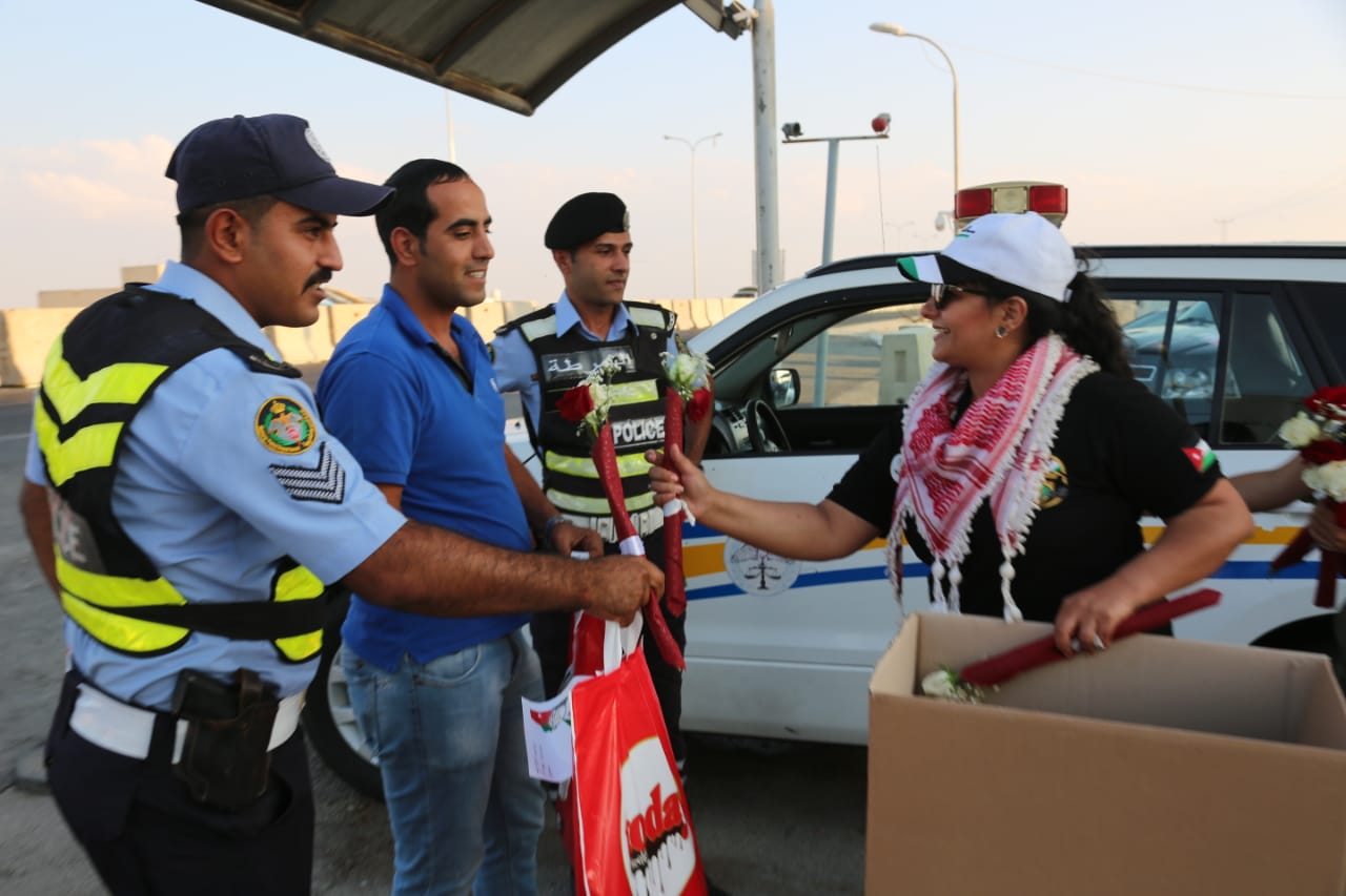 حيث انطلقت المبادرة بسيارات مزينه بإعلام الأردن وصور جلاله الملك بحوله ميدانية بمختلف مناطق العاصمه عمان شملت مرتبات السير والدوريات الخارجية.
