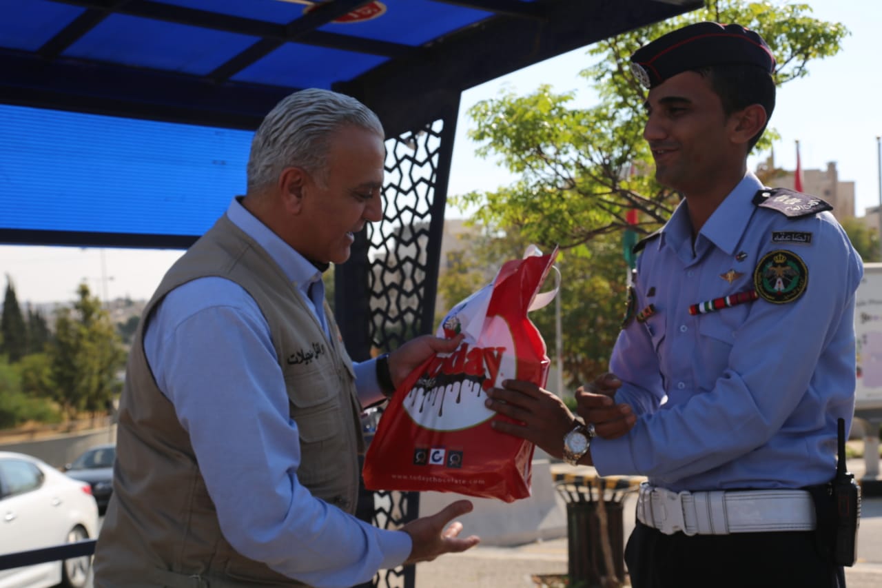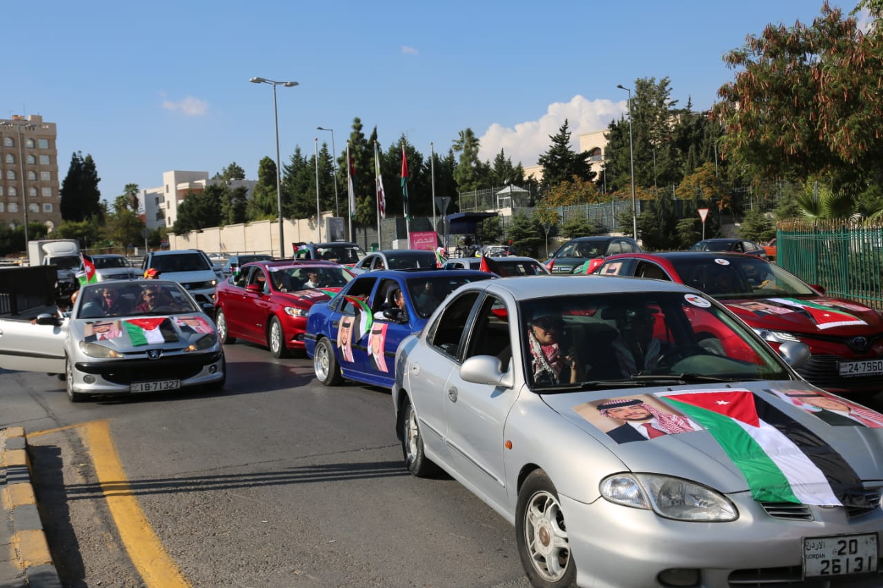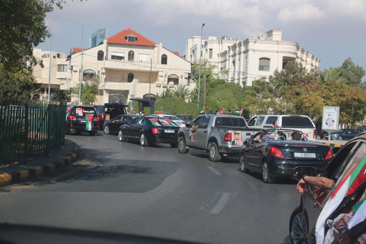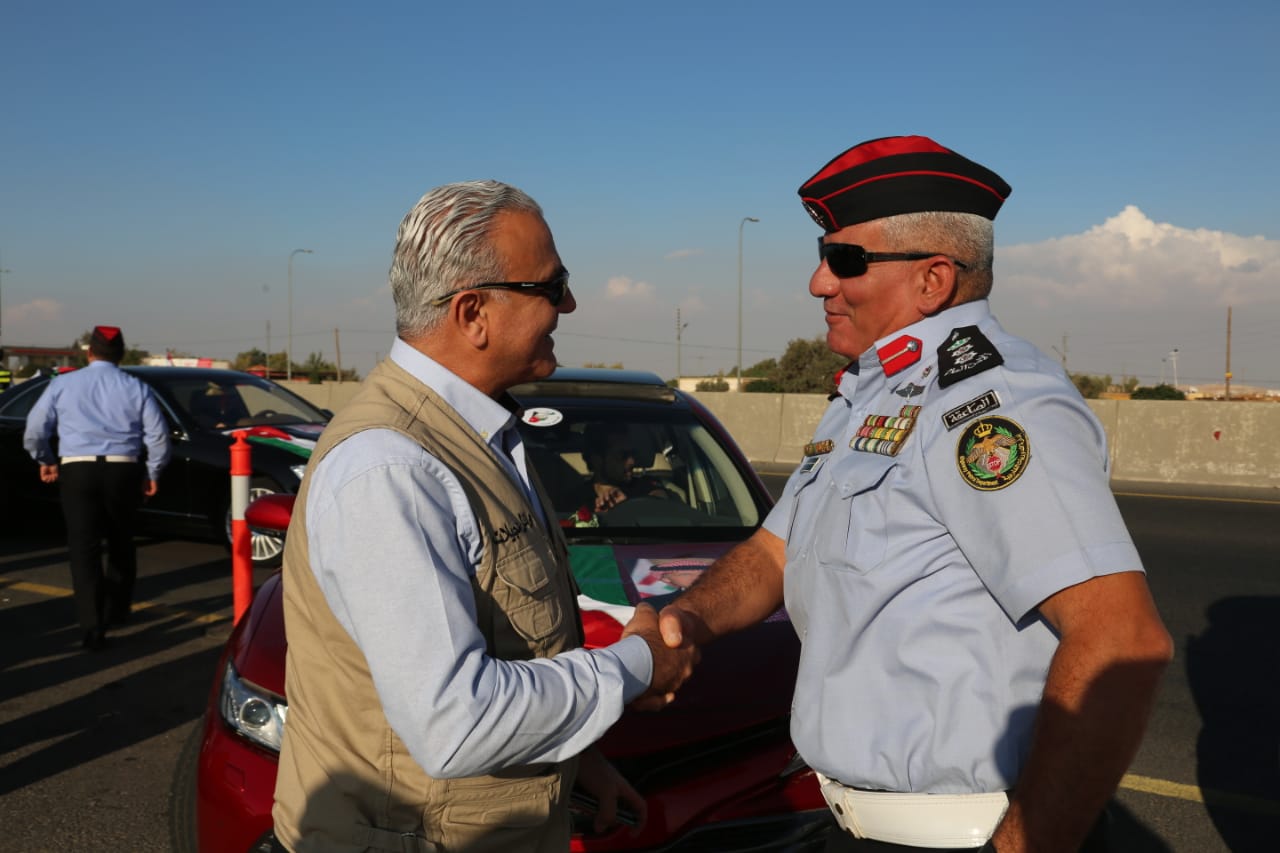 حيث انطلقت المبادرة بسيارات مزينه بإعلام الأردن وصور جلاله الملك بحوله ميدانية بمختلف مناطق العاصمه عمان شملت مرتبات السير والدوريات الخارجية.