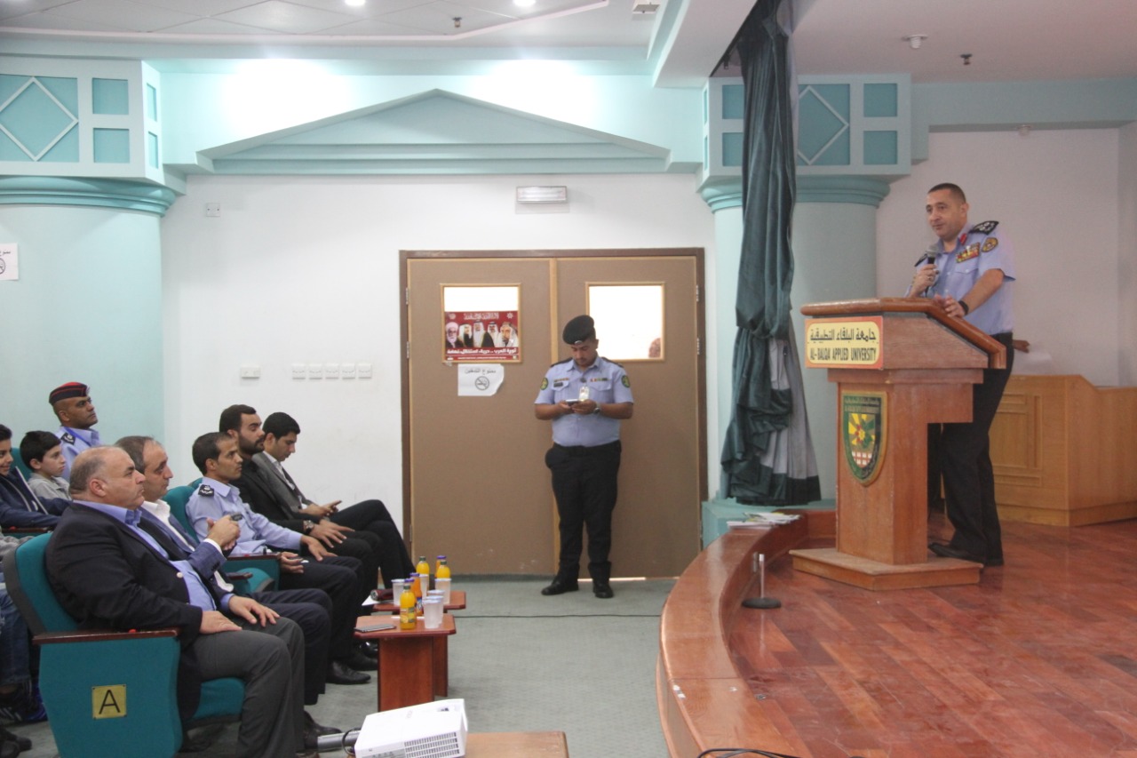 ورحب الدكتور خالد الزعبي باسم الجامعة بمدير شرطة البلقاء على رعايته لفعالية مشروع السلامة على الطريق مثمنا الدور الكبير الذي يبذله جهاز الامن العام في الحد من حوادث السير التي تنجم عن تهور بعض السائقين اثناء قيادتهم لمركباتهم على الطرقات.