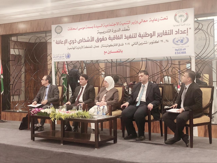 عمان- نظمت وزارة التنمية الاجتماعية الاثنين28/10/2019 اعمال الدورة التدريبية العربية لإعداد التقارير الوطنية لتنفيذ اتفاقية حقوق الأشخاص ذوي الإعاقة بالتعاون مع جامعة الدول العربية واللجنة الاقتصادية والاجتماعية لغربي آسيا "الاسكوا"، ومفوضية الأمم المتحدة لحقوق الانسان في 28 - 29 أكتوبر / تشرين الأول 2019.