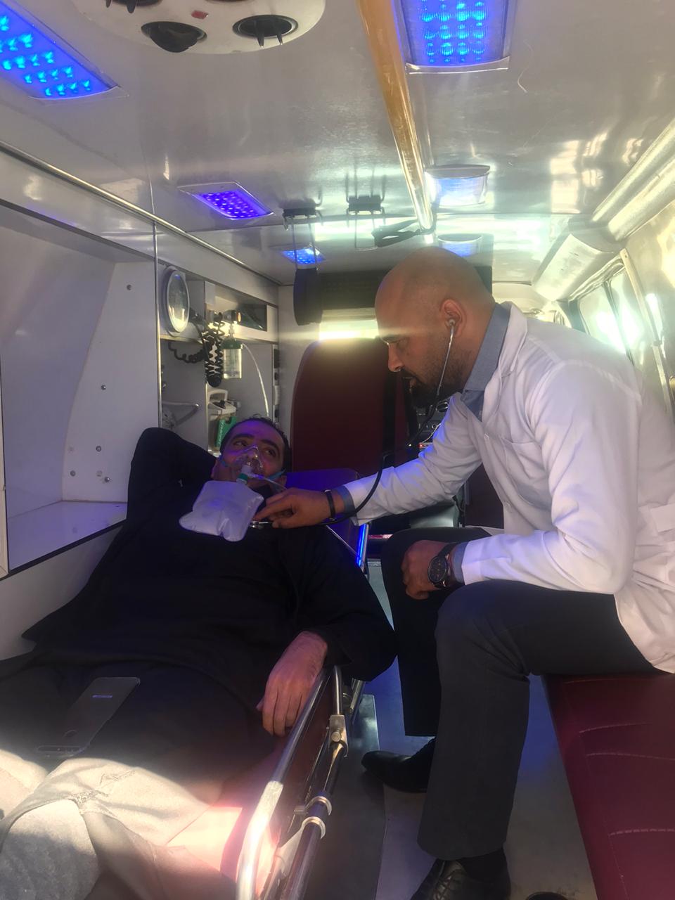 نقلت كوادر وزارة الصحه المريض محمد الغنميين بواسطة سيارة إسعاف تابعه لها الى مستشفى البشير بشكل فوري وادخالة غرفه العناية المركزة لمتابعة حالته الصحية وتقديم العلاج الطبيعي الممكن واتخاذ اي إجراءات طبية لاحقة ليستعيد عافيته وتسخير كافه الامكانيات الطبية له.