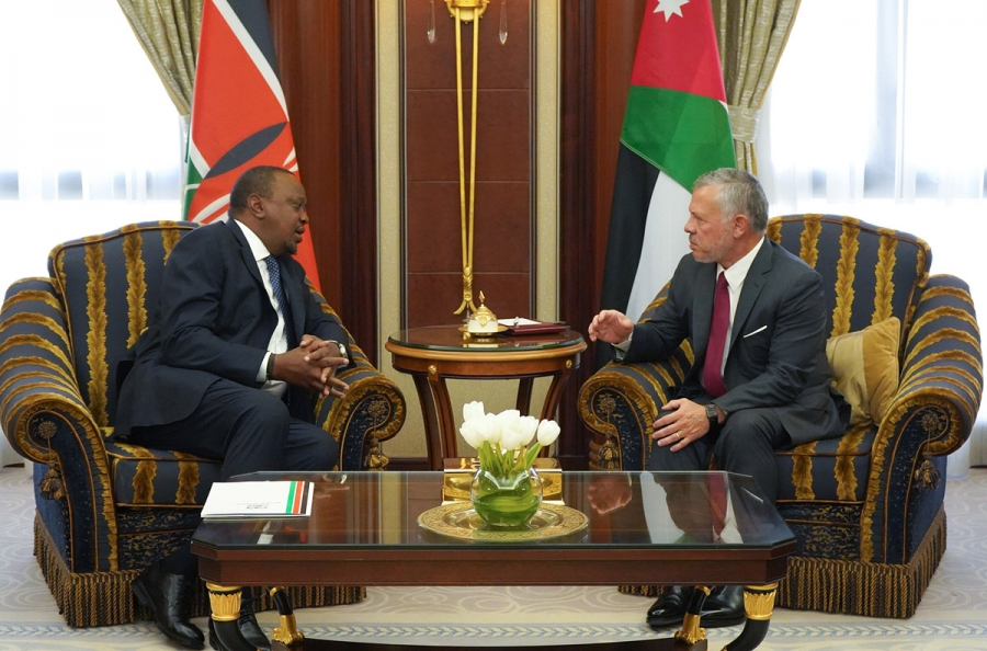 وتم التأكيد على أهمية استكمال العمل في الاتفاقيات بين البلدين، اضافة إلى العمل على التشريعات التي من شأنها ان توفر المجال لتعزيز التعاون الاقتصادي، خصوصا بين القطاع الخاص في الأردن وكينيا. كما تطرق اللقاء إلى مبادرة اجتماعات العقبة، والجهود الإقليمية والدولية في الحرب على الإرهاب، وفق نهج شمولي، حيث ثمن الرئيس الكيني دور الأردن، بقيادة جلالة الملك، في محاربة الإرهاب وتكريس نهج الحوار. وحضر اللقاء وزير الخارجية وشؤون المغتربين، ومستشار جلالة الملك للاتصال والتنسيق، ومستشار جلالة الملك للسياسات والإعلام، ووزير التخطيط والتعاون الدولي ووزير دولة للشؤون الاقتصاديّة.