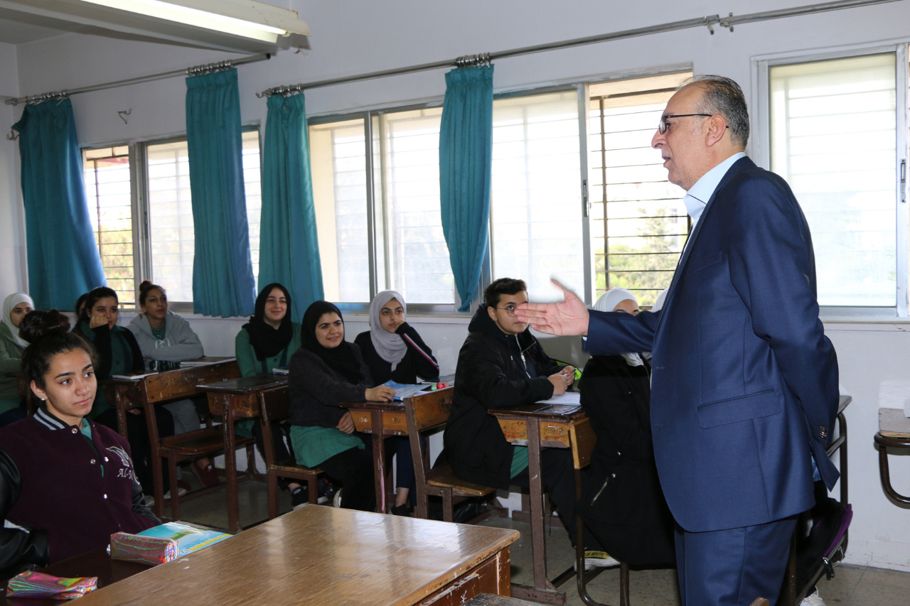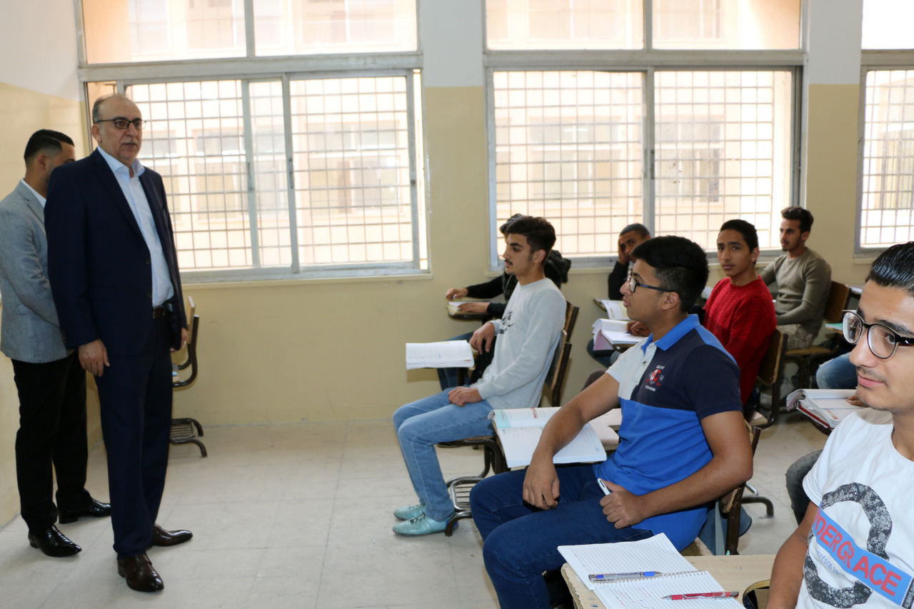 كما قام أبو يامين بتفقد سير العملية التربوية في مدرسة فراس العجلوني الثانوية الشاملة للبنين والتقى إدارة ومعلمي المدرسة وحضر جانباً من الحصص الصفية فيها، واستمع إلى ملاحظات الطلبة حول امتحان الثانوية العامة، مؤكداً أن الامتحانات ستراعي كافة المستويات والفروقات الفردية بين الطلبة.