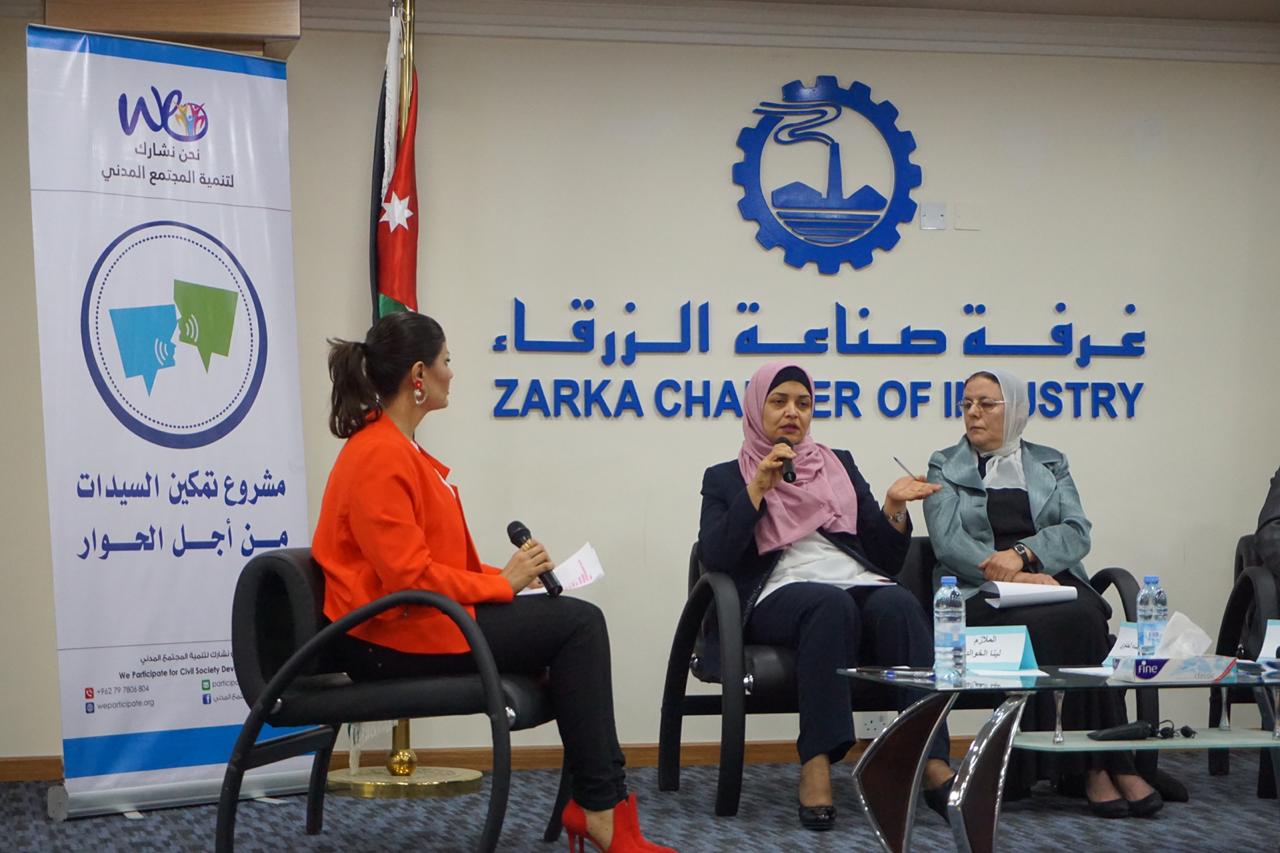 أدارت الزميلة إخلاص القاضي الجلسة الحوارية التي عقدت اليوم في غرفة صناعة الزرقاء خلال حفل إطلاق مشروع " تمكين السيدات من أجل الحوار" بتنظيم من مركز نحن نشارك لتنمية المجتمع المدني، بالتعاون مع السفارة الامريكية في عمان.
