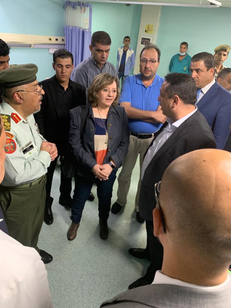 واستمع الداوود إلى إيجاز قدّمه مدير الخدمات الطبيّة الملكيّة بالوكالة حول الأوضاع الصحيّة للمصابين، وإجراءات الرعاية المقدّمة لهم.
